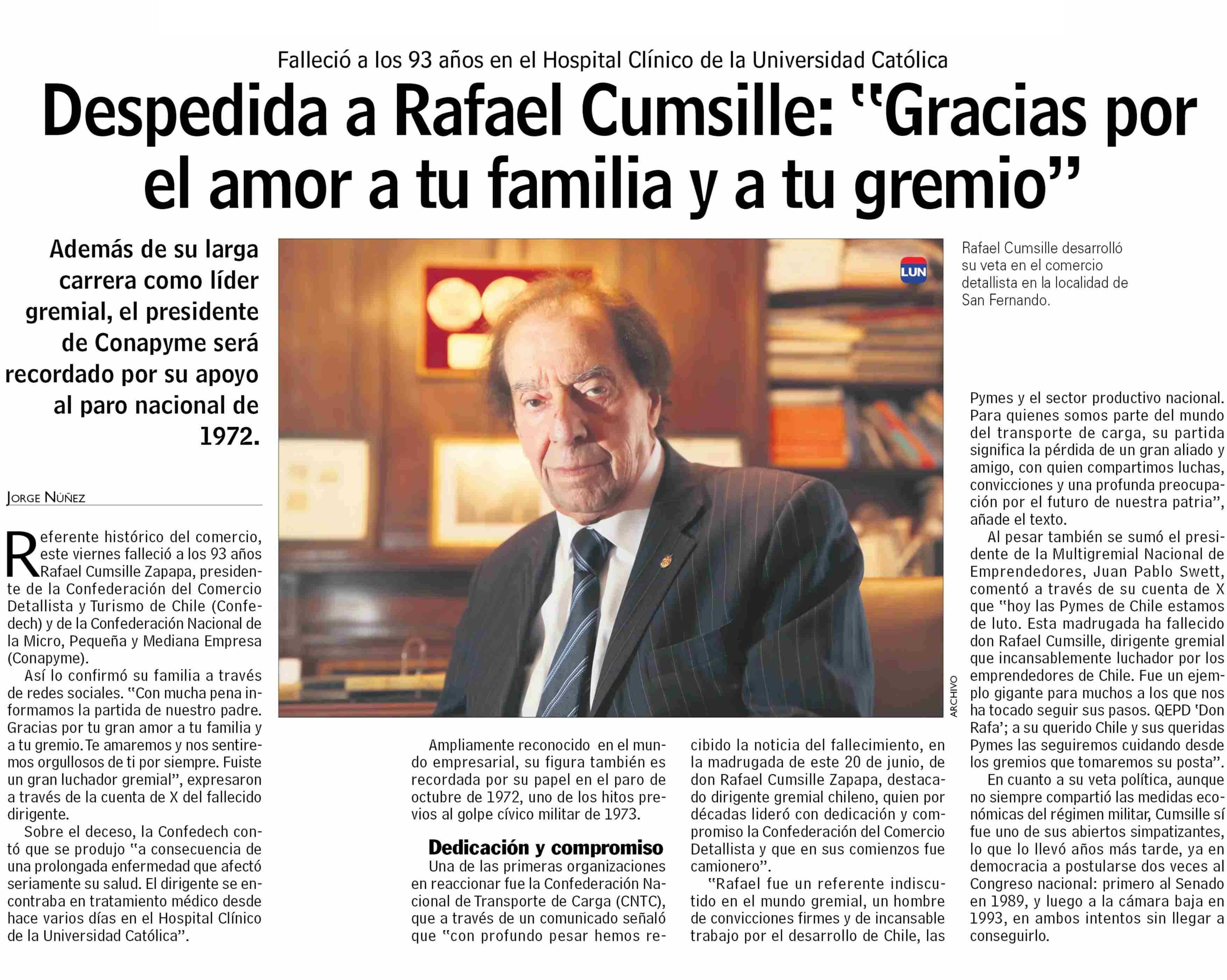 Despedida a Rafael Cumsille: "Gracias por el amor a tu familia y a tu gremio"