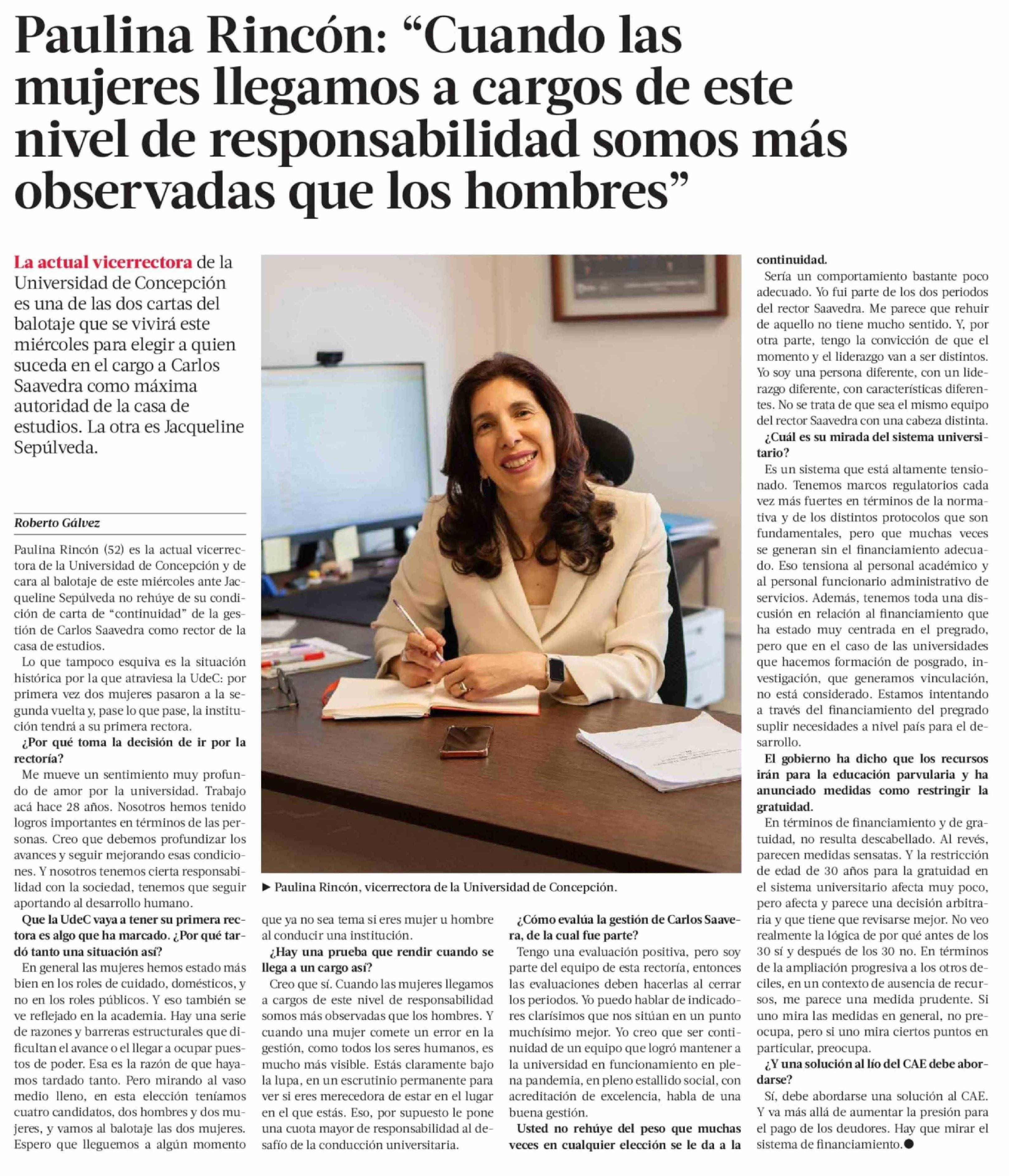 Título: Paulina Rincón: "Cuando las mujeres llegamos a cargos de este nivel de responsabilidad somos más observadas que los hombres"