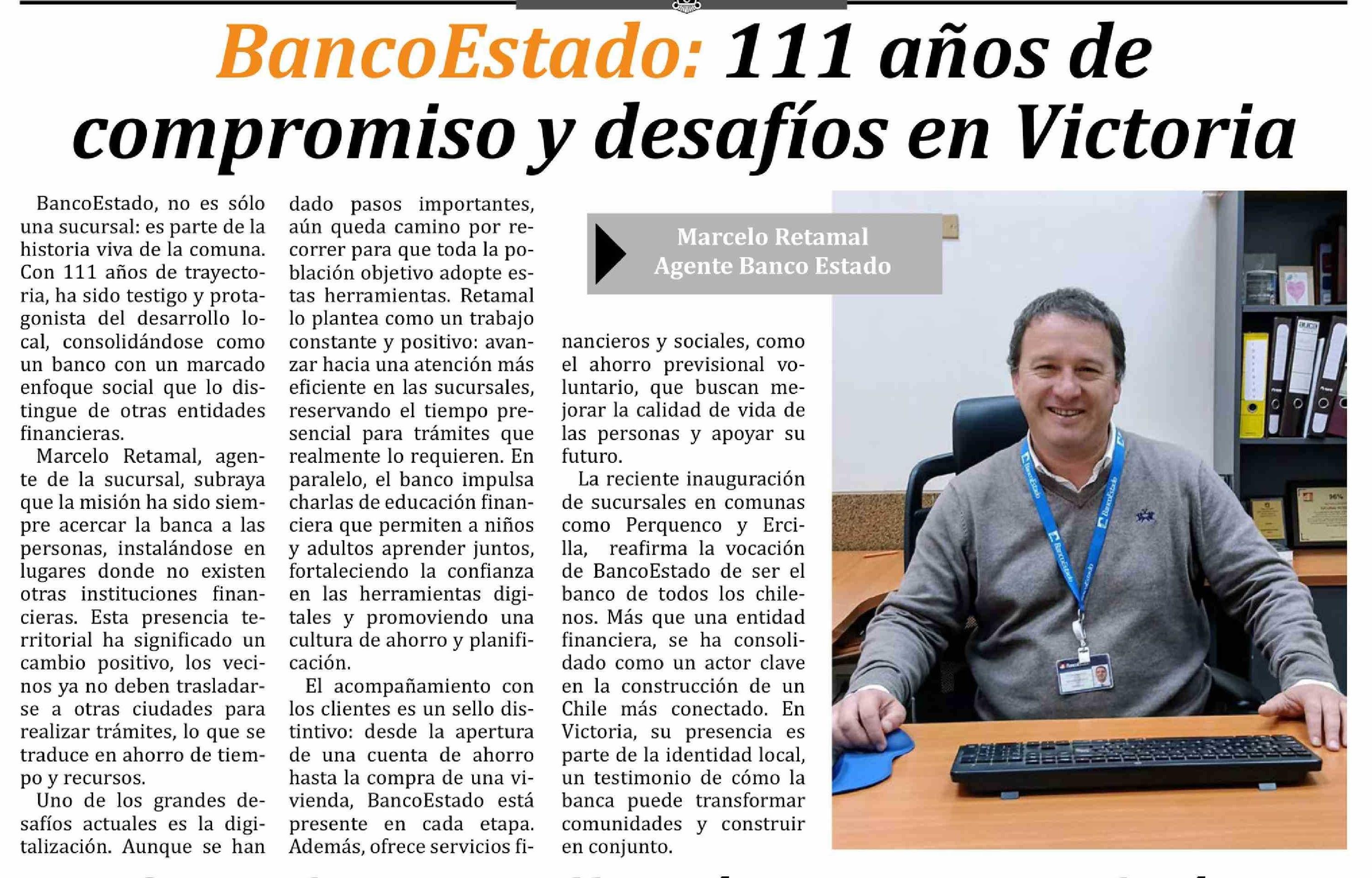 BancoEstado: 111 años de compromiso y desafíos en Victoria