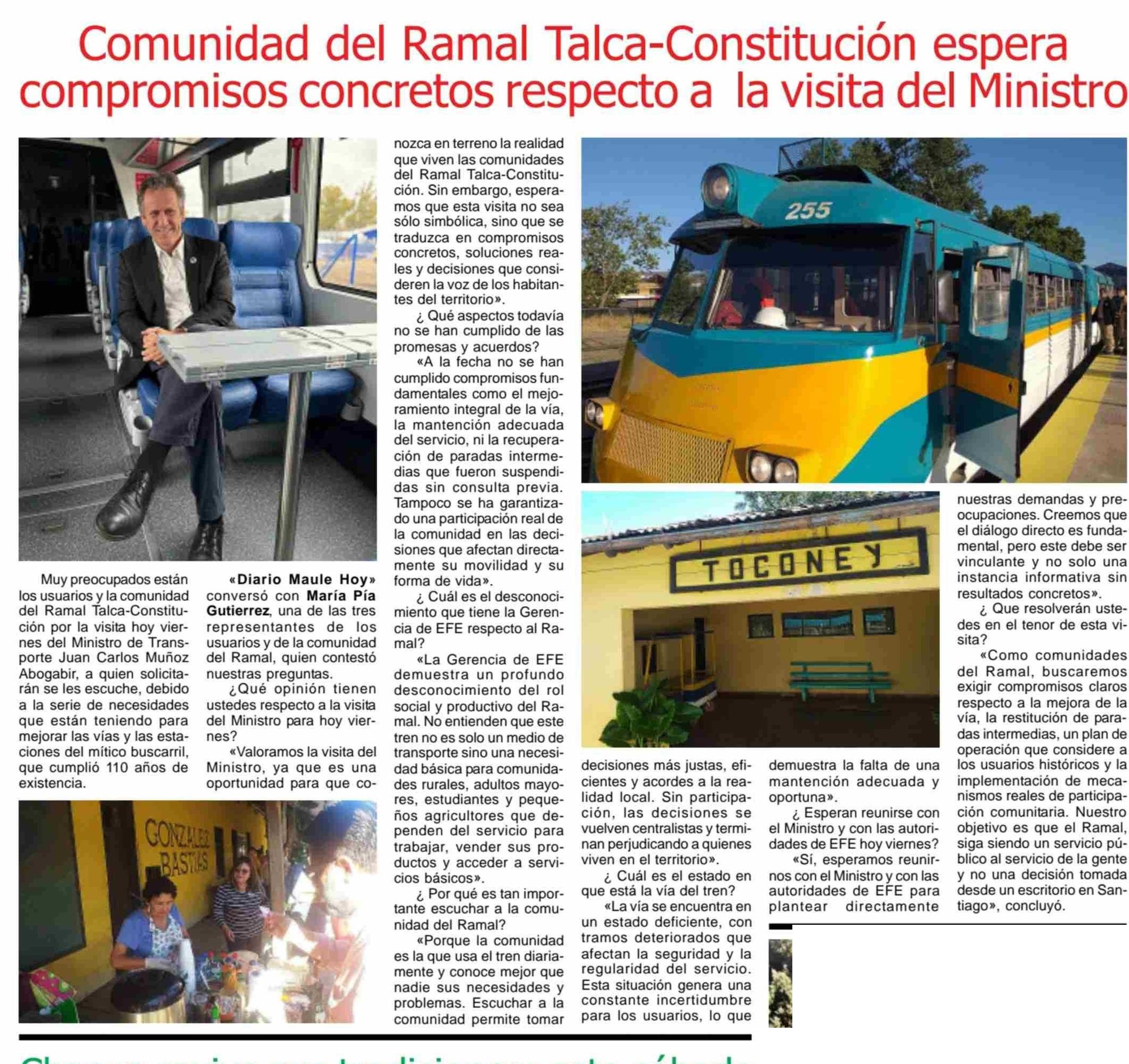 Comunidad del Ramal Talca-Constitución espera compromisos concretos respecto a la visita del Ministro