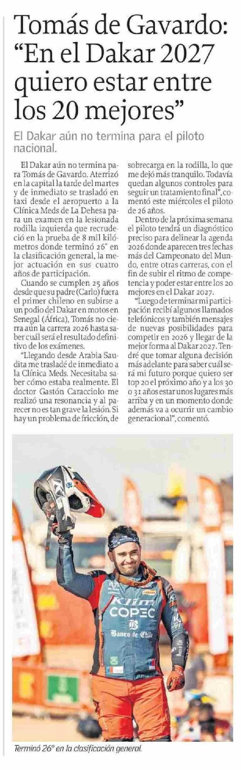 Tomás de Gavardo: "En el Dakar 2027 quiero estar entre los 20 mejores"