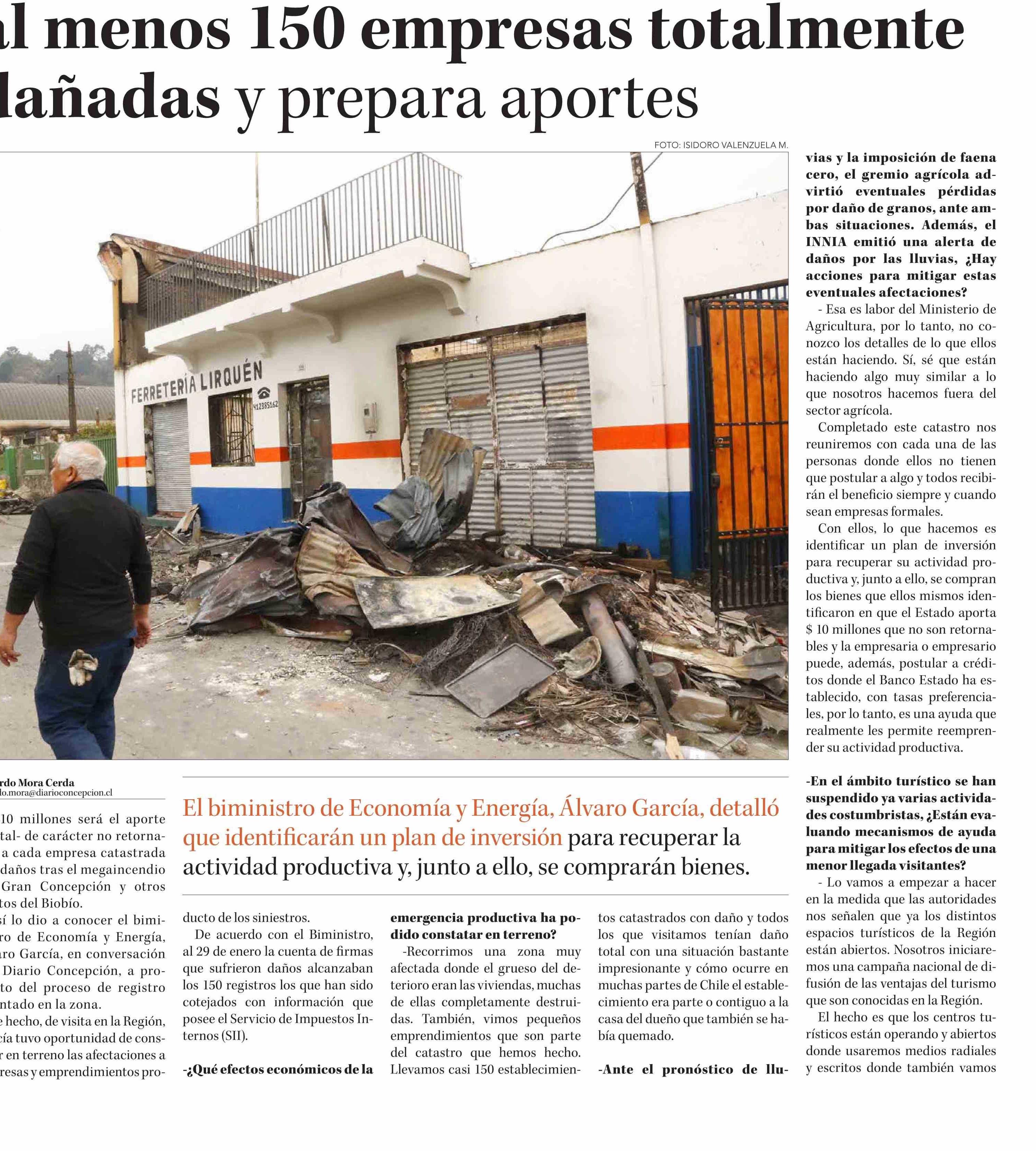 Incendios forestales: Gobierno detecta al menos 150 empresas totalmente dañadas y prepara aportes