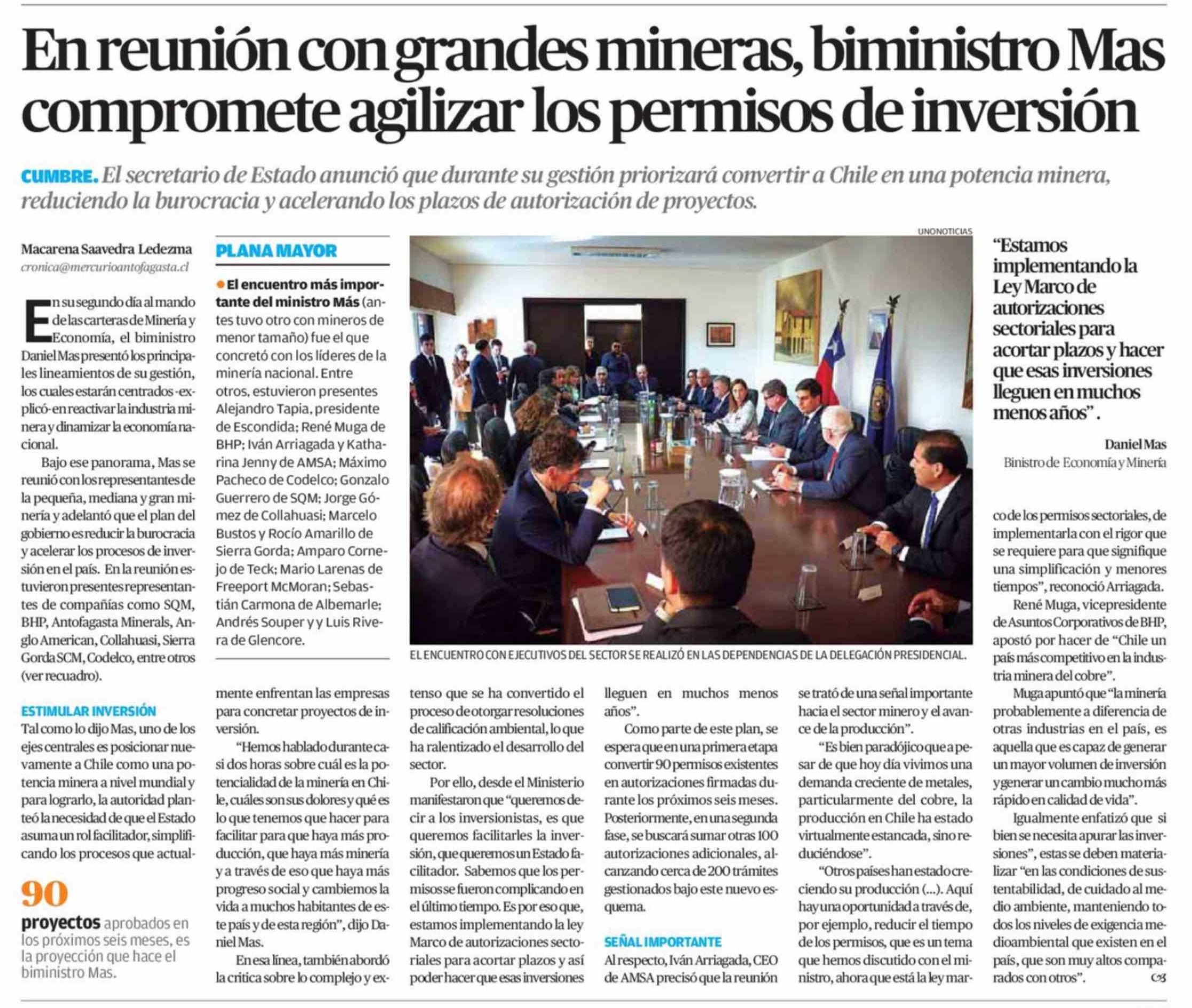 En reunión con grandes mineras, biministro Mas compromete agilizar los permisos de inversión