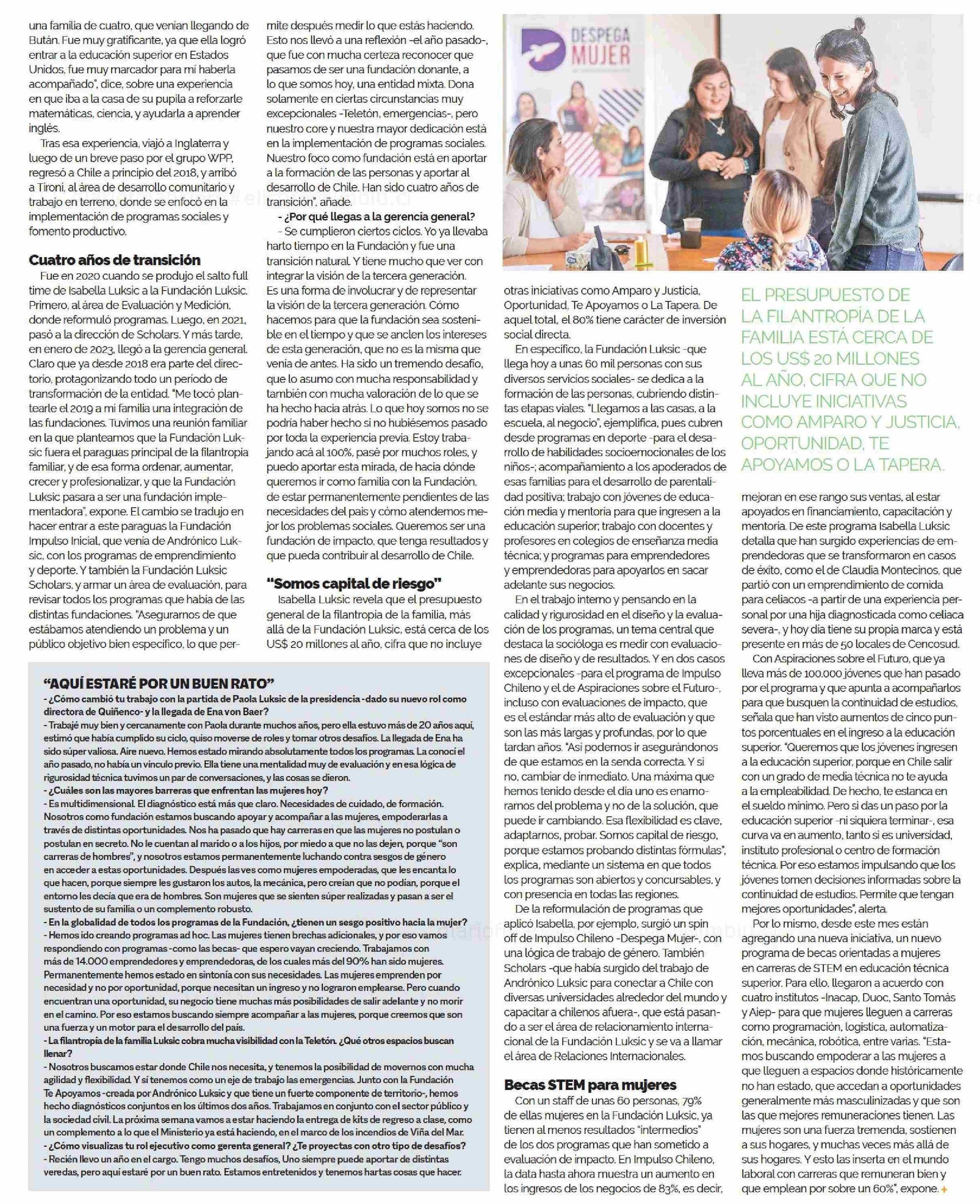 ISABELLA LUKSIC: "ESTAMOS BUSCANDO EMPODERAR A LAS MUJERES, QUE ACCEDAN A OPORTUNIDADES GENERALMENTE MÁS MASCULINIZADAS"