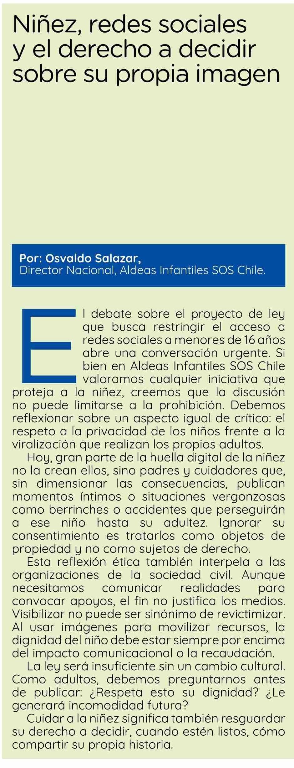 Columnas de Opinión: Niñez, redes sociales y el derecho a decidir sobre su propia imagen