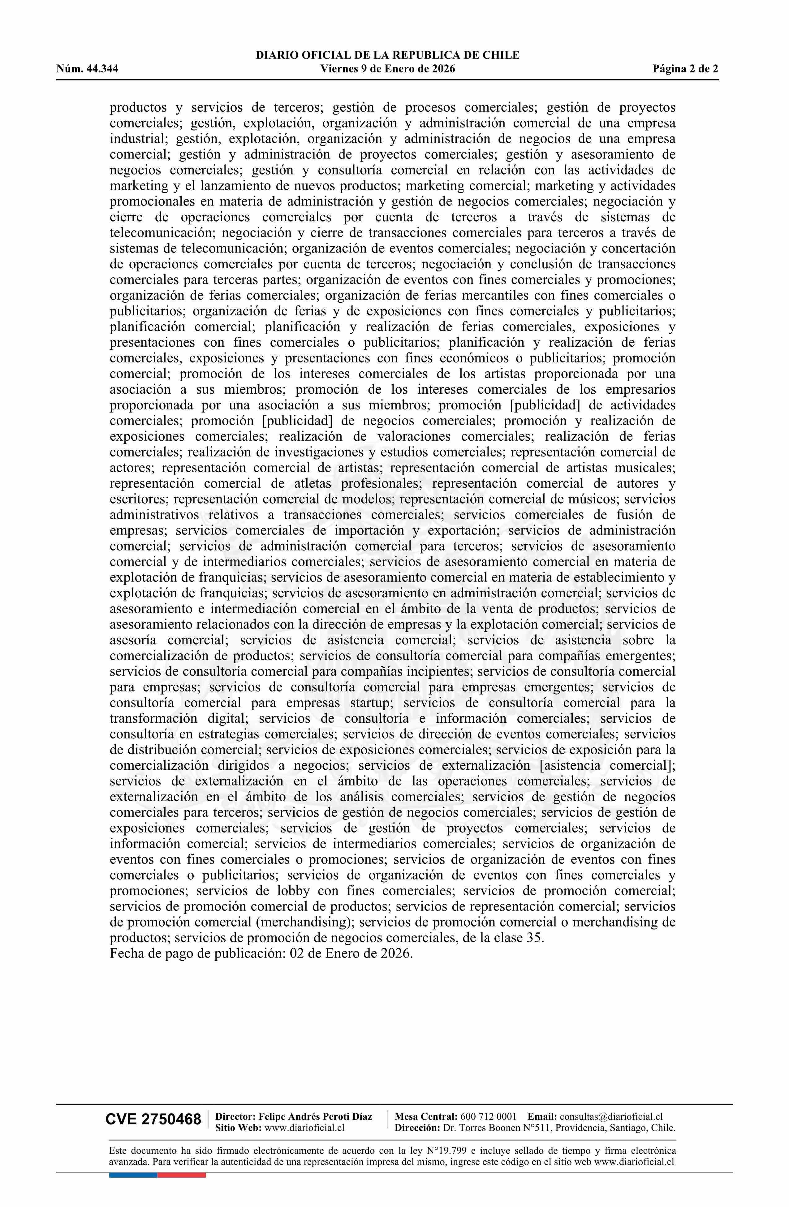 Diario Oficial Edición Electrónica (Diario Oficial de Chile - 6 Marcas Y Patentes)