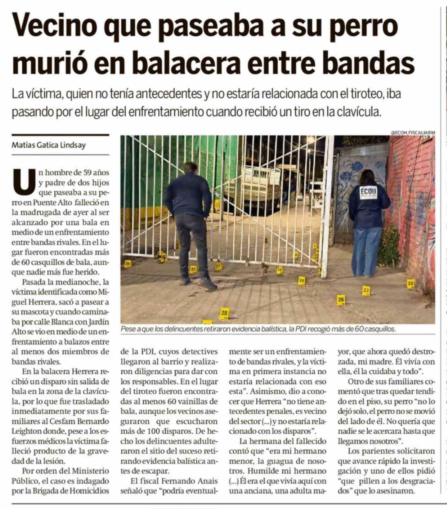 Vecino que paseaba a su perro murió en balacera entre bandas