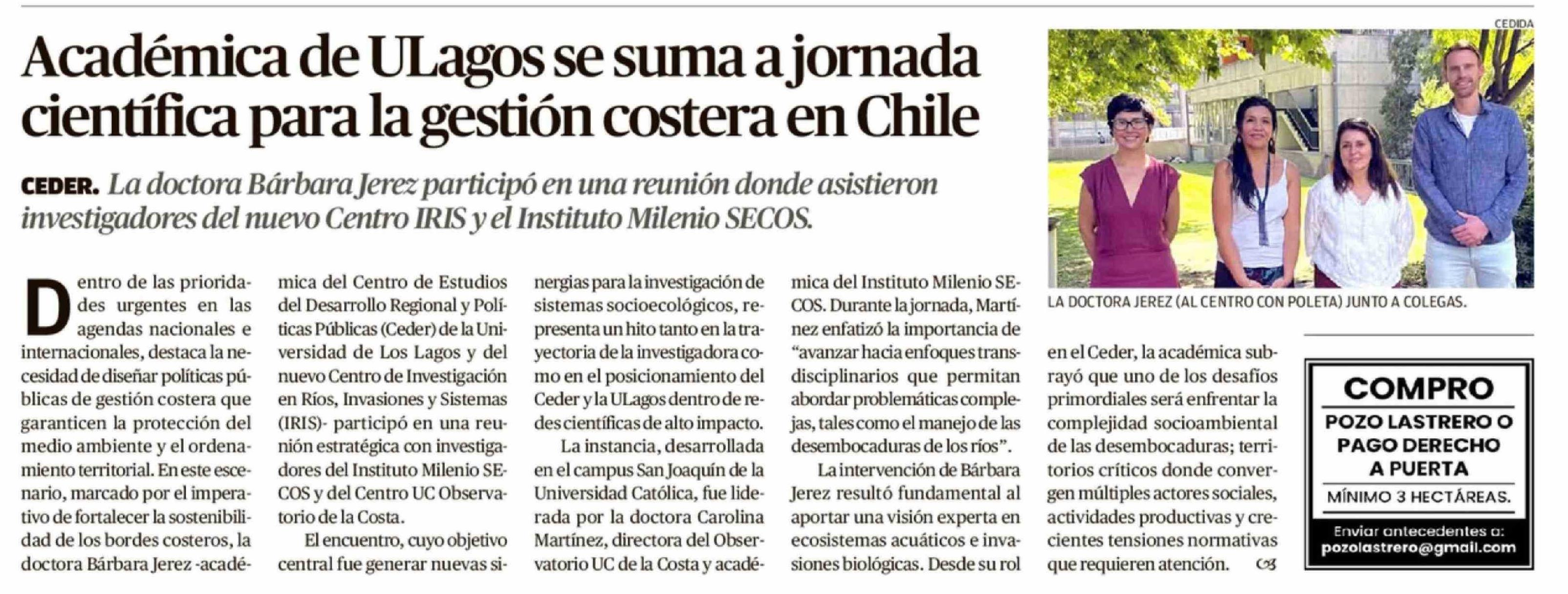 Título: Académica de ULagos se suma a jornada científica para la gestión costera en Chile