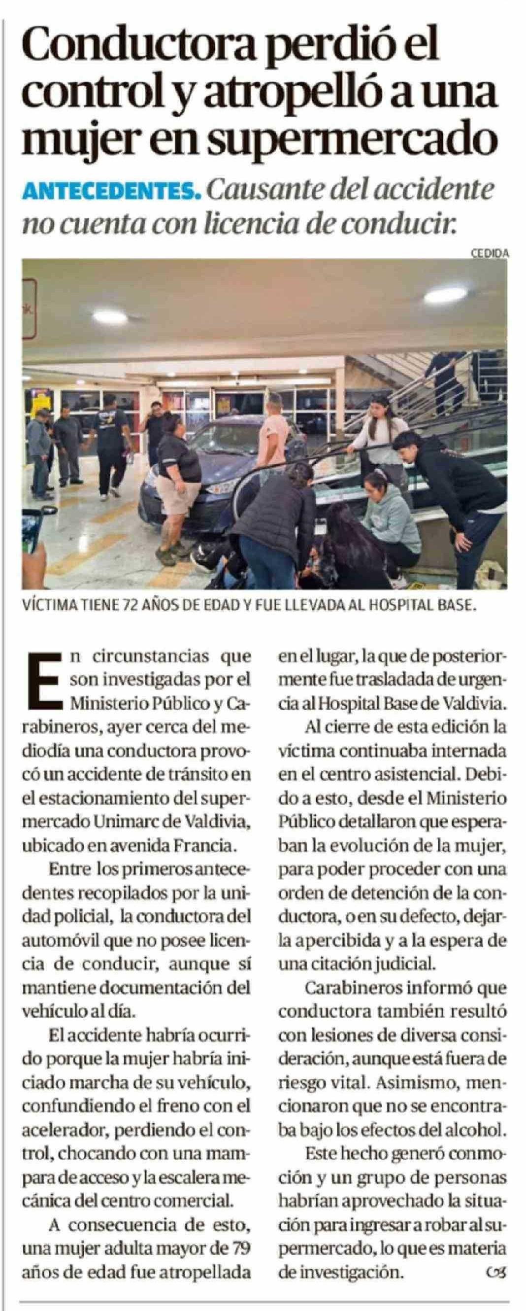 Conductora perdió el control y atropelló a una mujer en supermercado