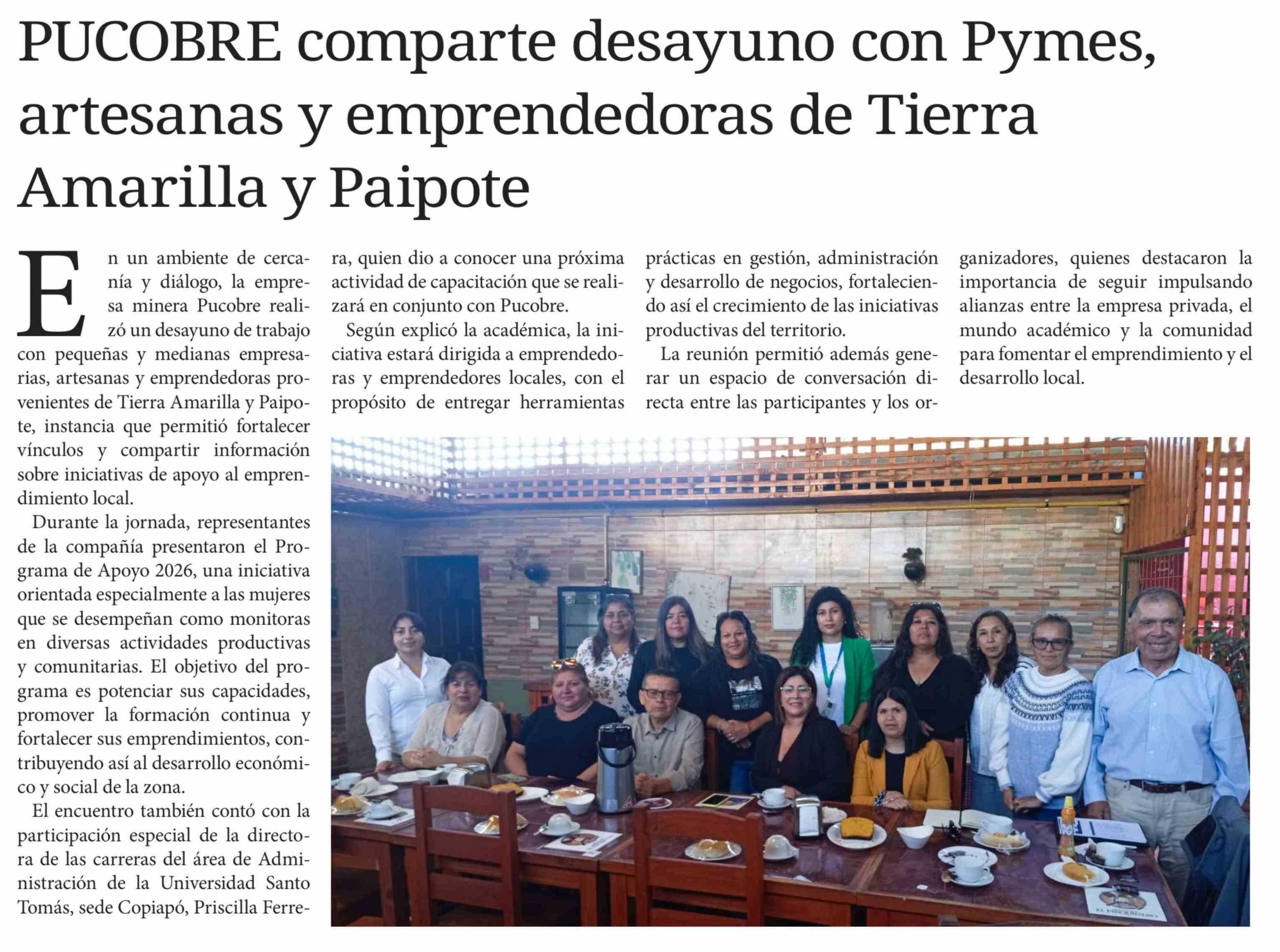 PUCOBRE comparte desayuno con Pymes, artesanas y emprendedoras de Tierra Amarilla y Paipote