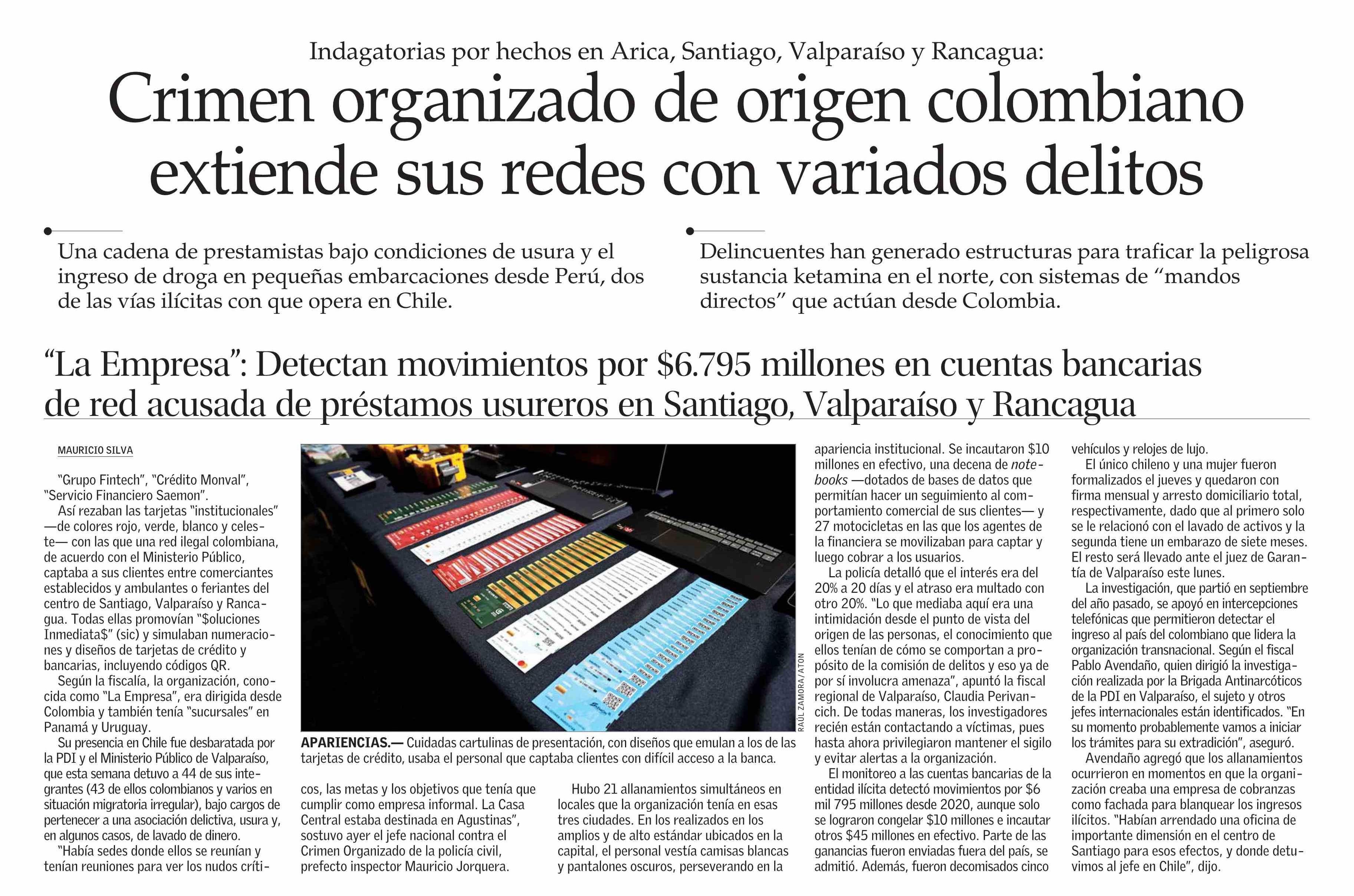 Crimen organizado de origen colombiano extiende sus redes con variados delitos