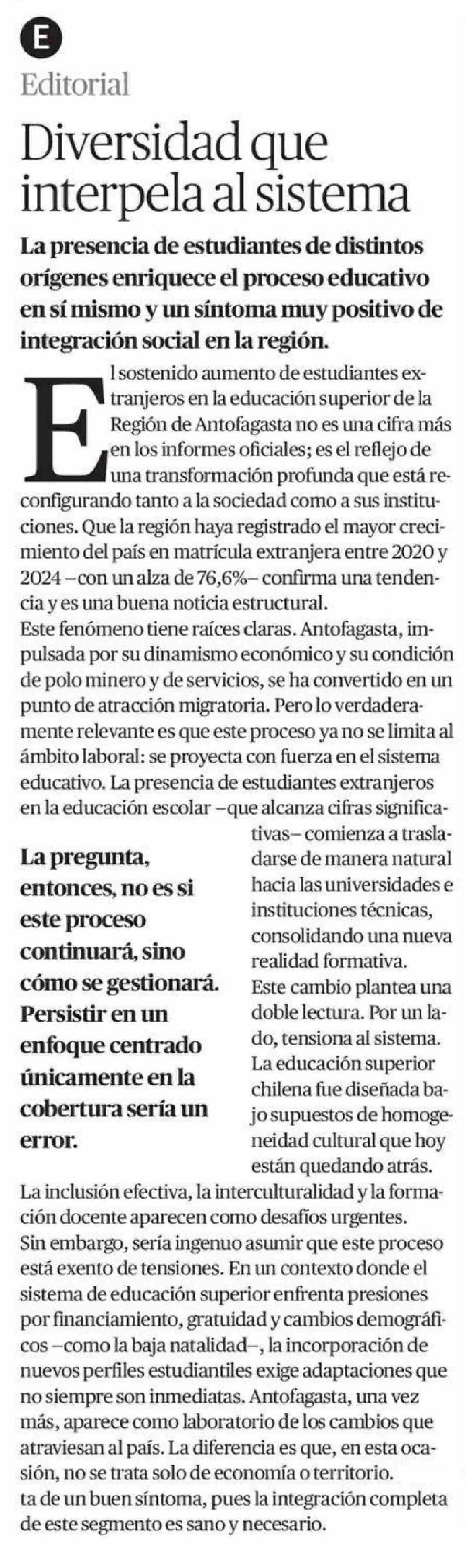 Editorial: Diversidad que interpela al sistema