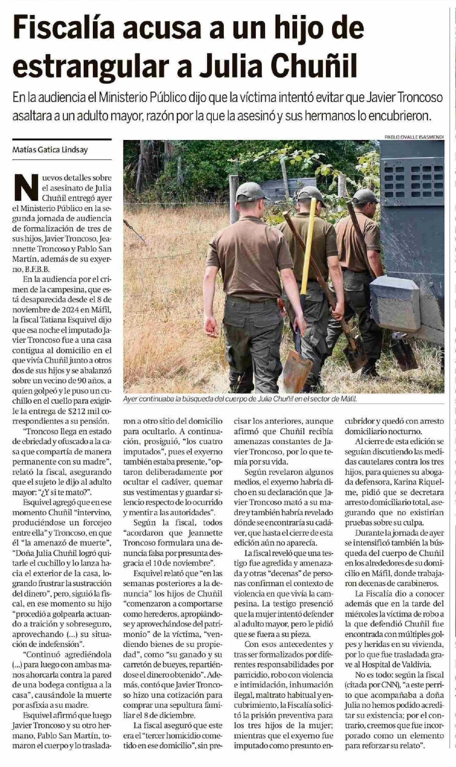 Fiscalía acusa a un hijo de estrangular a Julia Chuñil