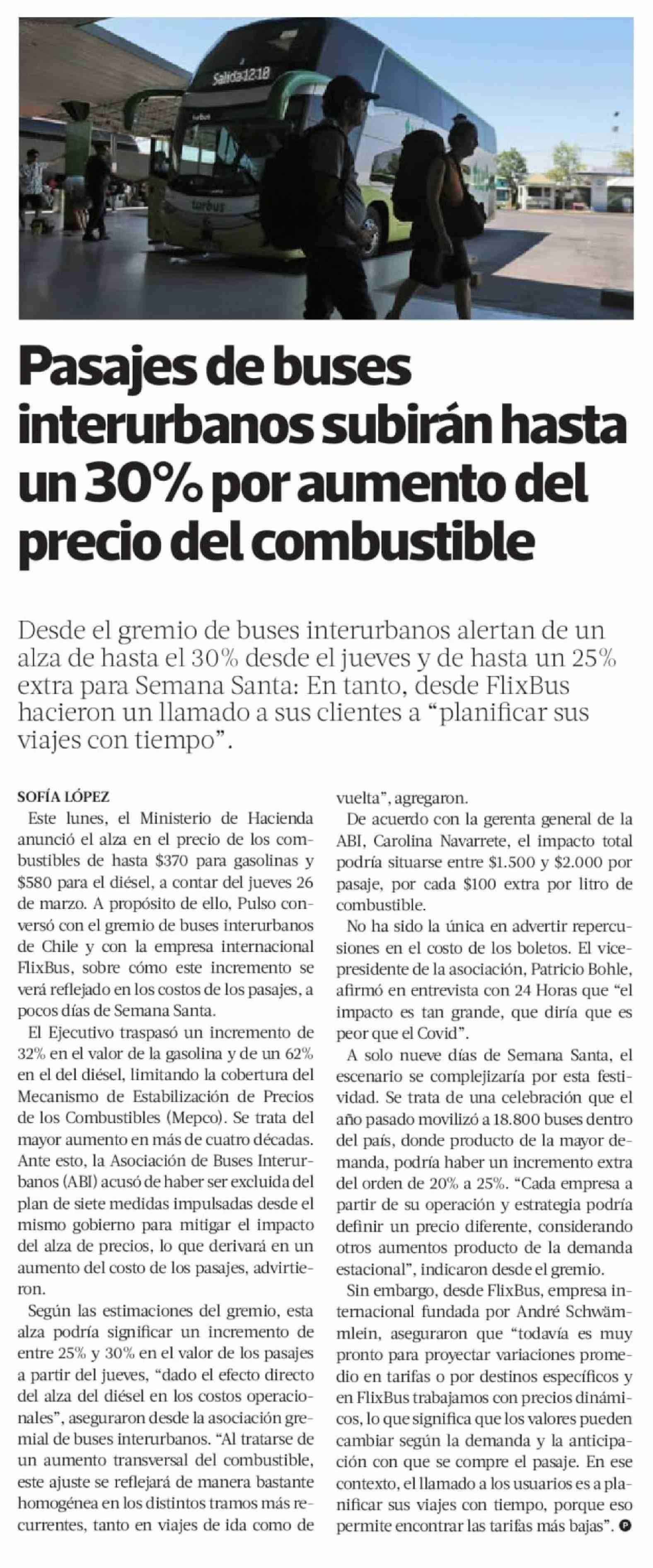 Pasajes de buses interurbanos subirán hasta un 30% por aumento del precio del combustible
