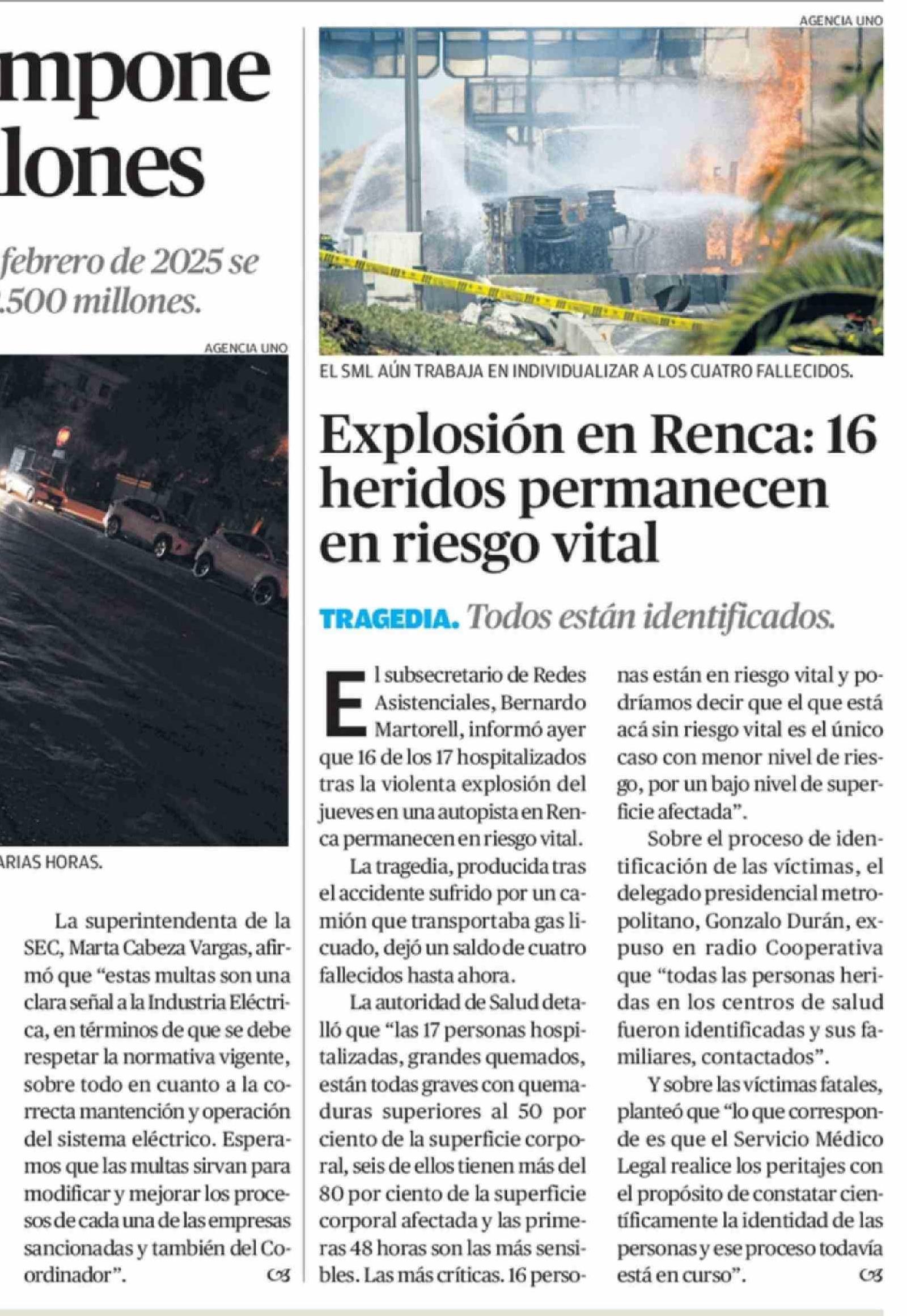 Explosión en Renca: 16 heridos permanecen en riesgo vital