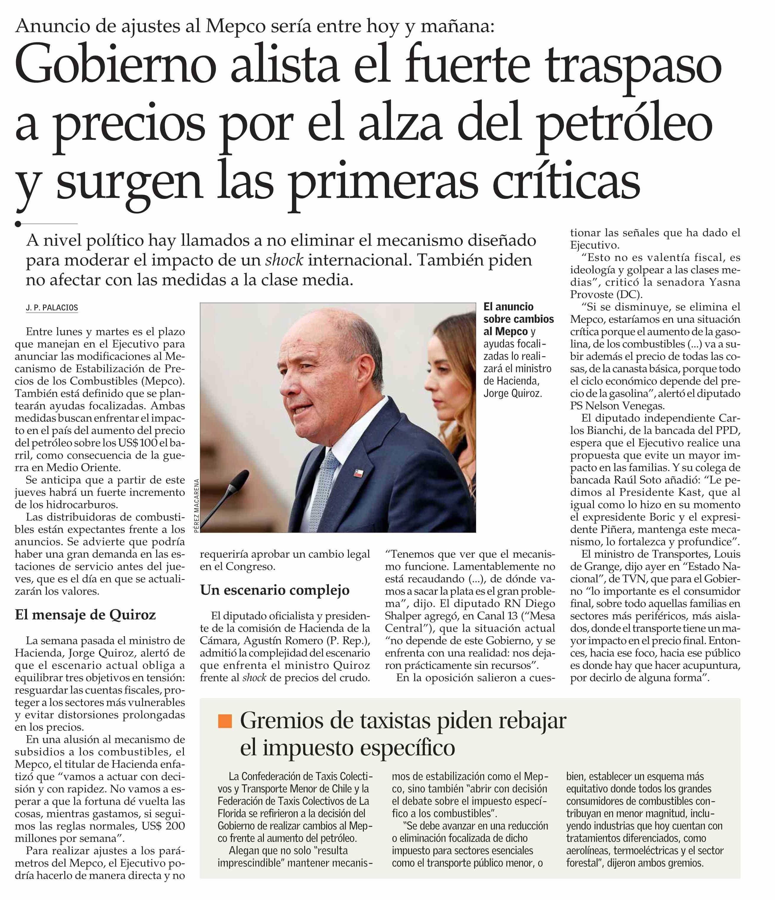 Gobierno alista el fuerte traspaso a precios por el alza del petróleo y surgen las primeras críticas