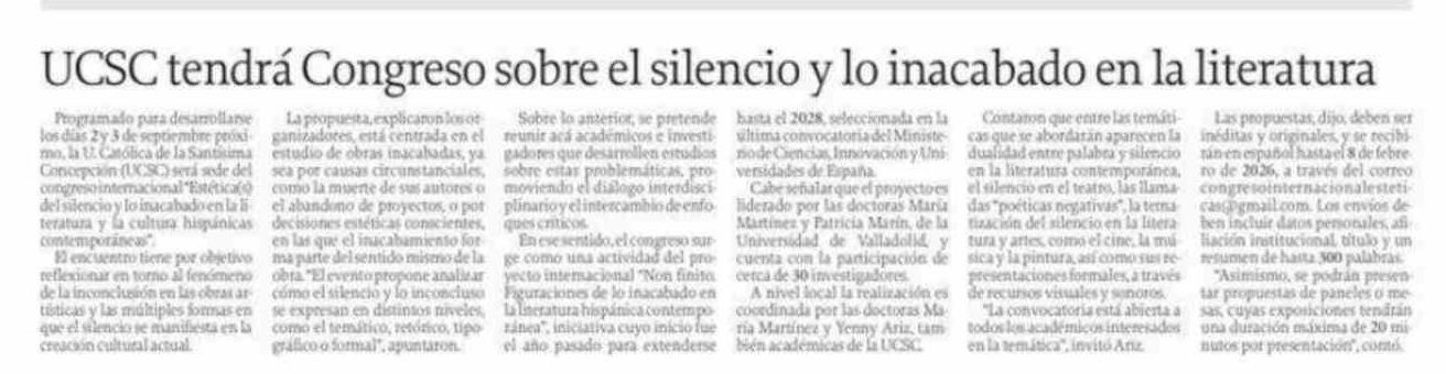 UCSC tendrá Congreso sobre el silencio y lo inacabado en la literatura
