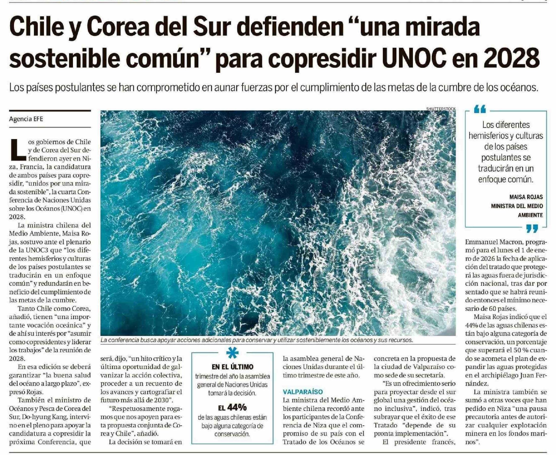 Chile y Corea del Sur defienden “una mirada sostenible común” para copresidir UNOC en 2028