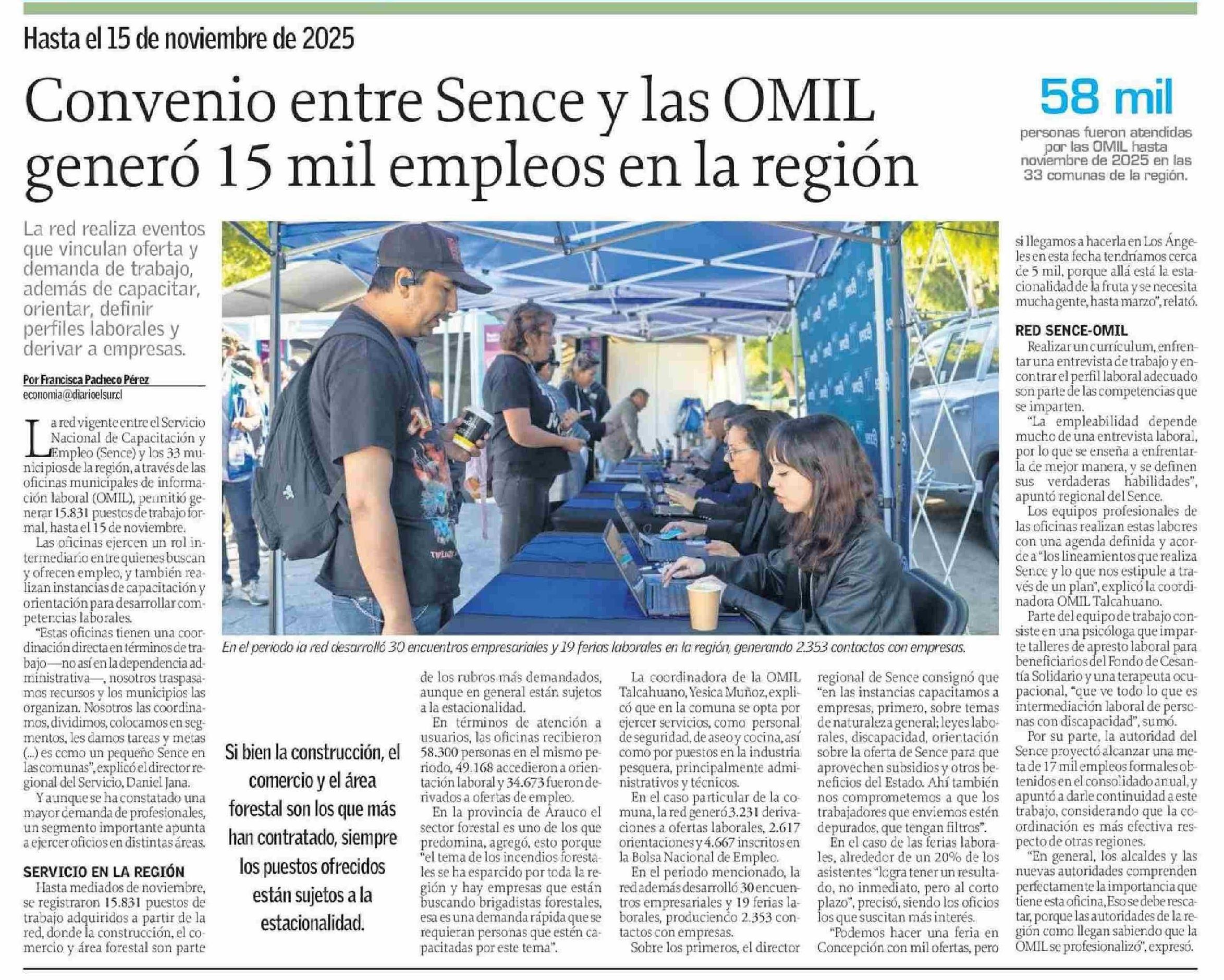 Convenio entre Sence y las OMIL generó 15 mil empleos en la región