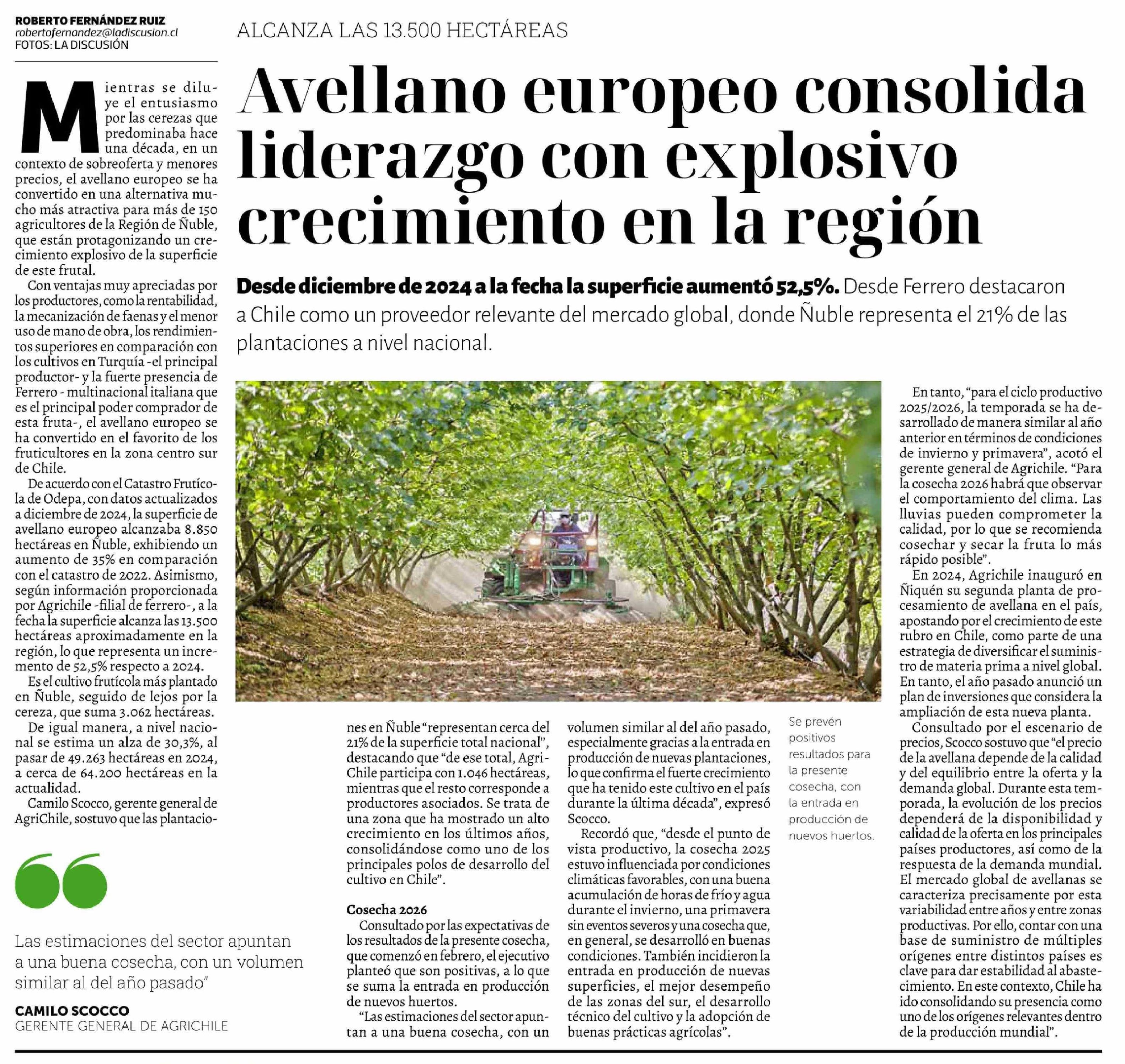 Título: Avellano europeo consolida liderazgo con explosivo crecimiento en la región