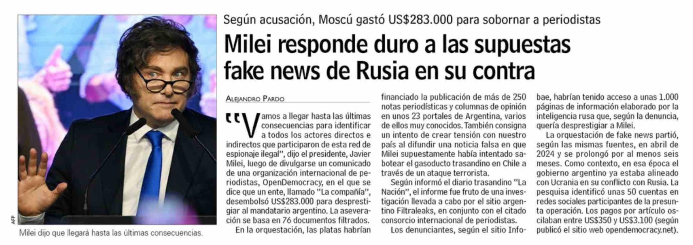 Milei responde duro a las supuestas fake news de Rusia en su contra