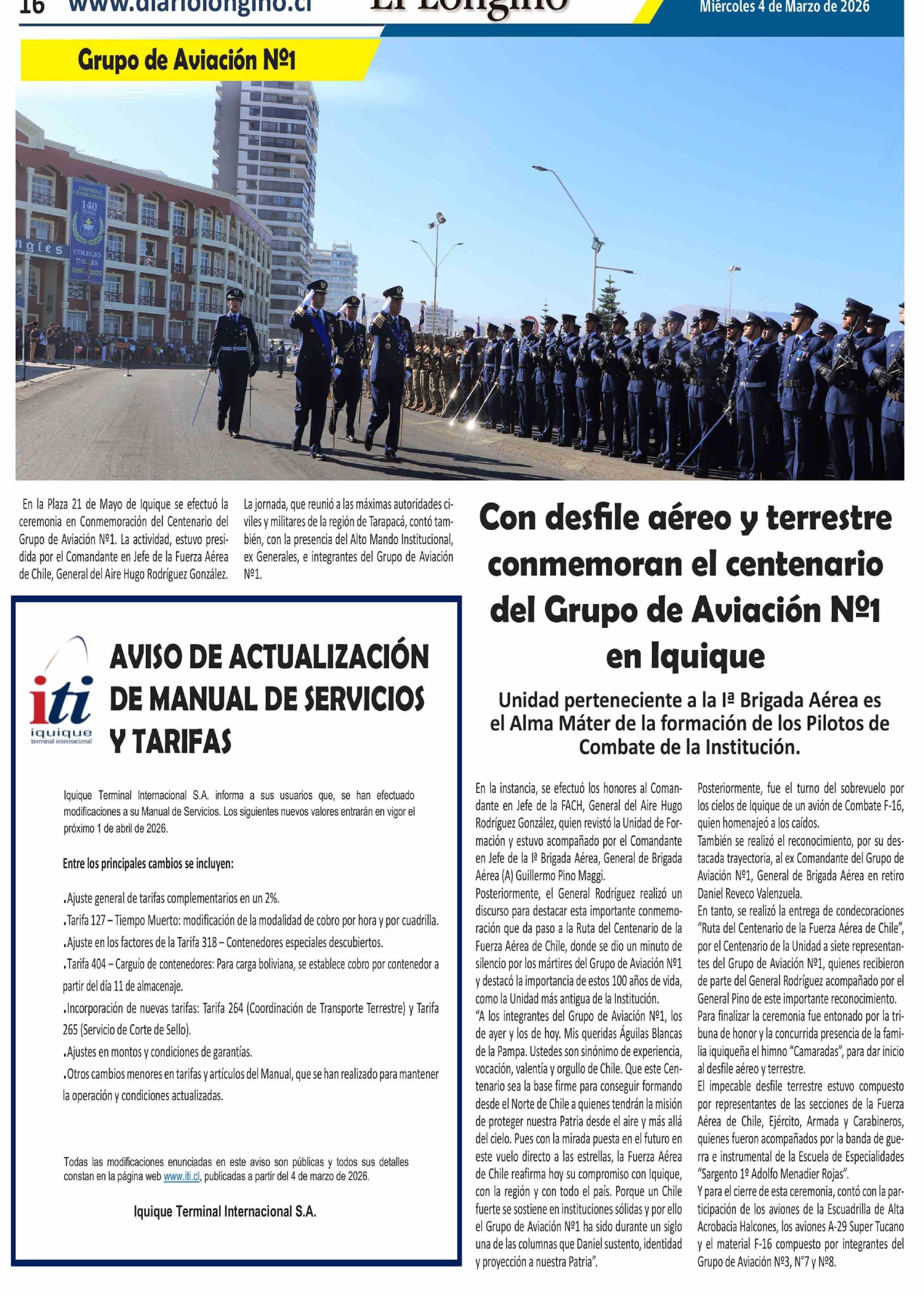 Con desfile aéreo y terrestre conmemoran el centenario del Grupo de Aviación Nº1 en Iquique