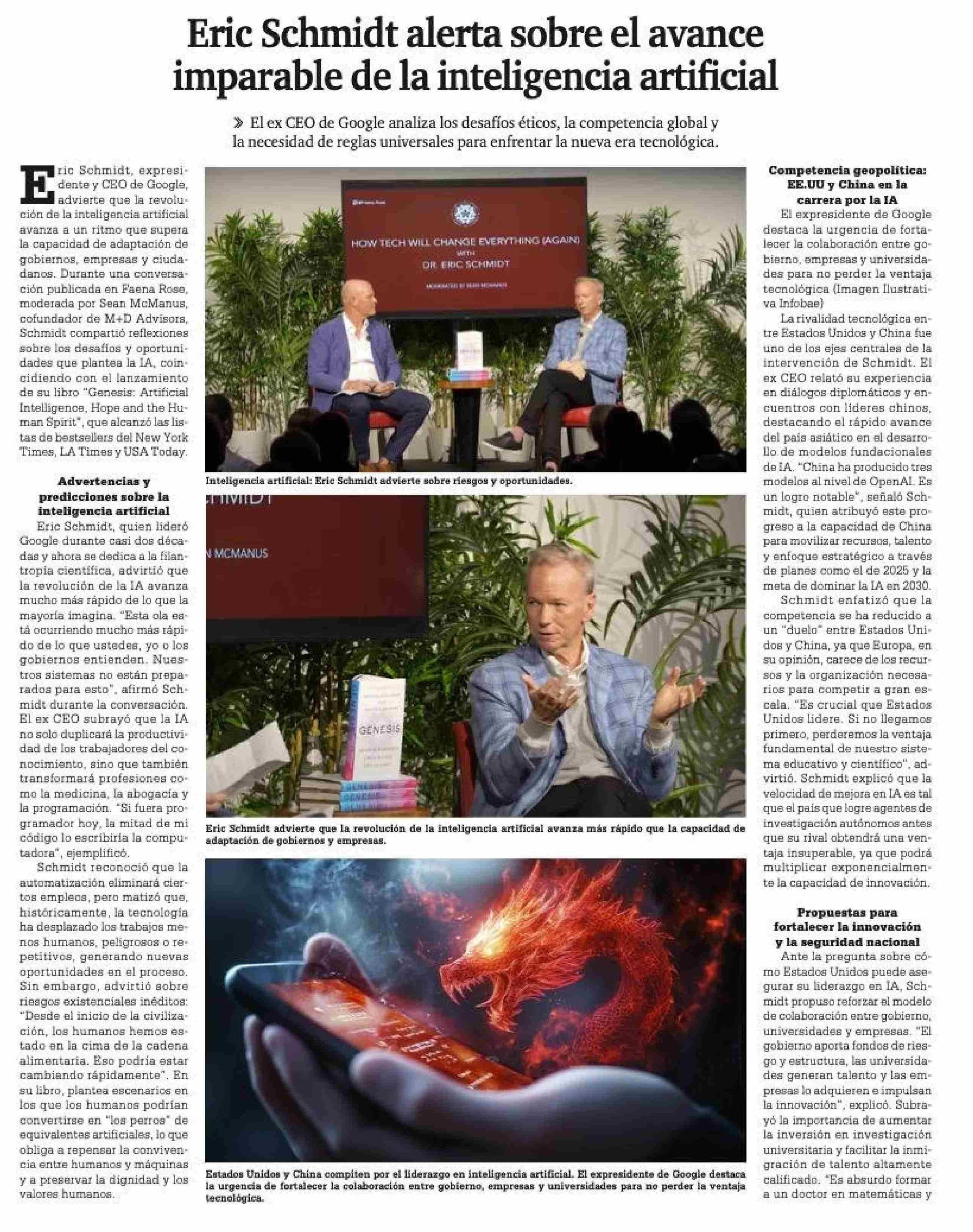 Eric Schmidt alerta sobre el avance imparable de la inteligencia artificial