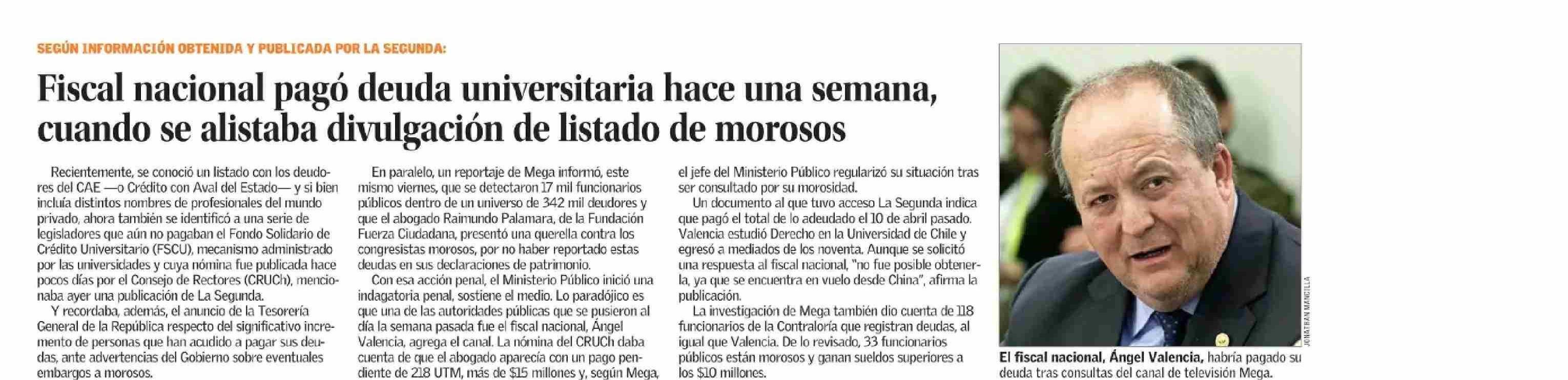 Fiscal nacional pagó deuda universitaria hace una semana, cuando se alistaba divulgación de listado de morosos