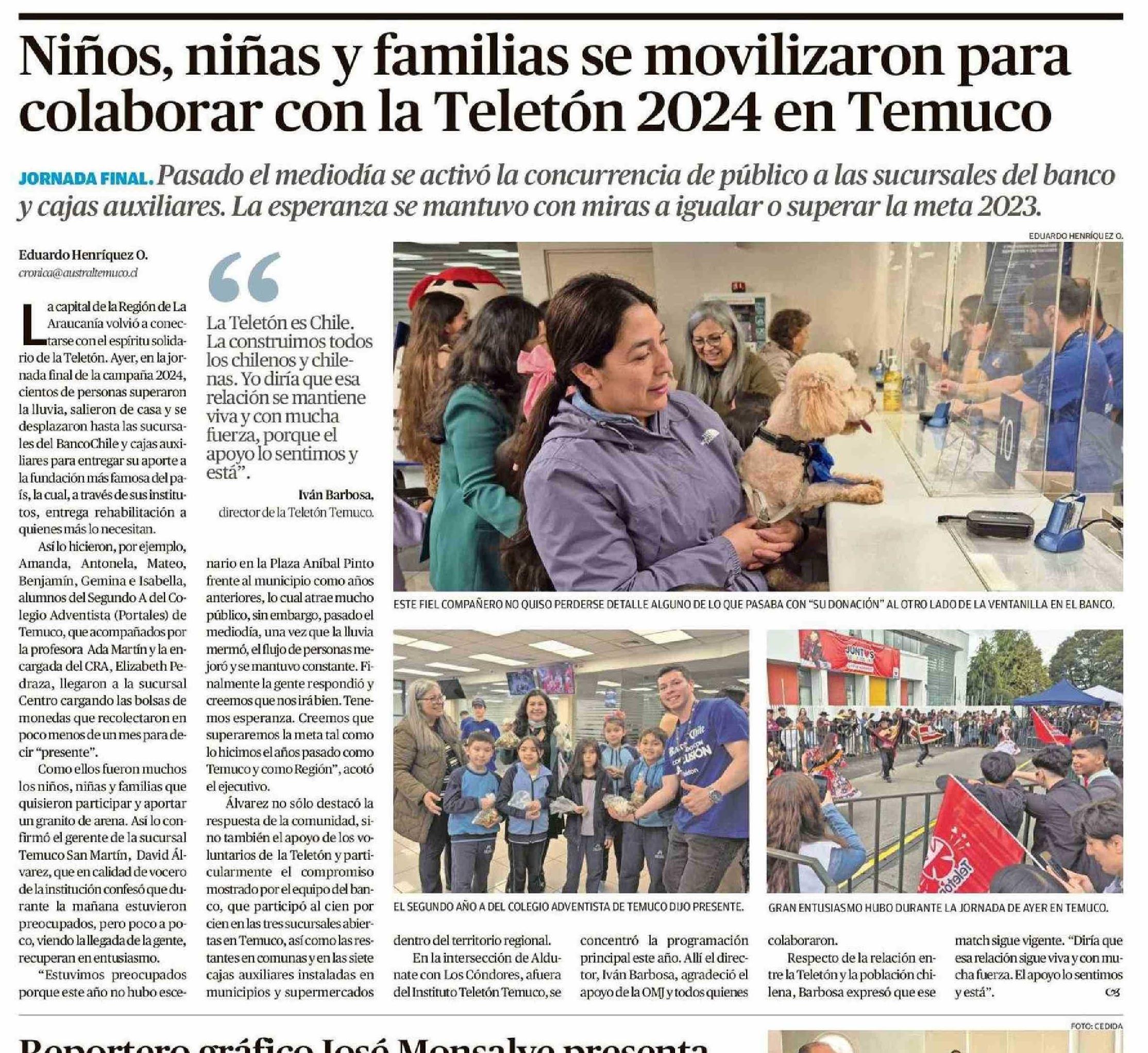 Niños, niñas y familias se movilizaron para colaborar con la Teletón 2024 en Temuco