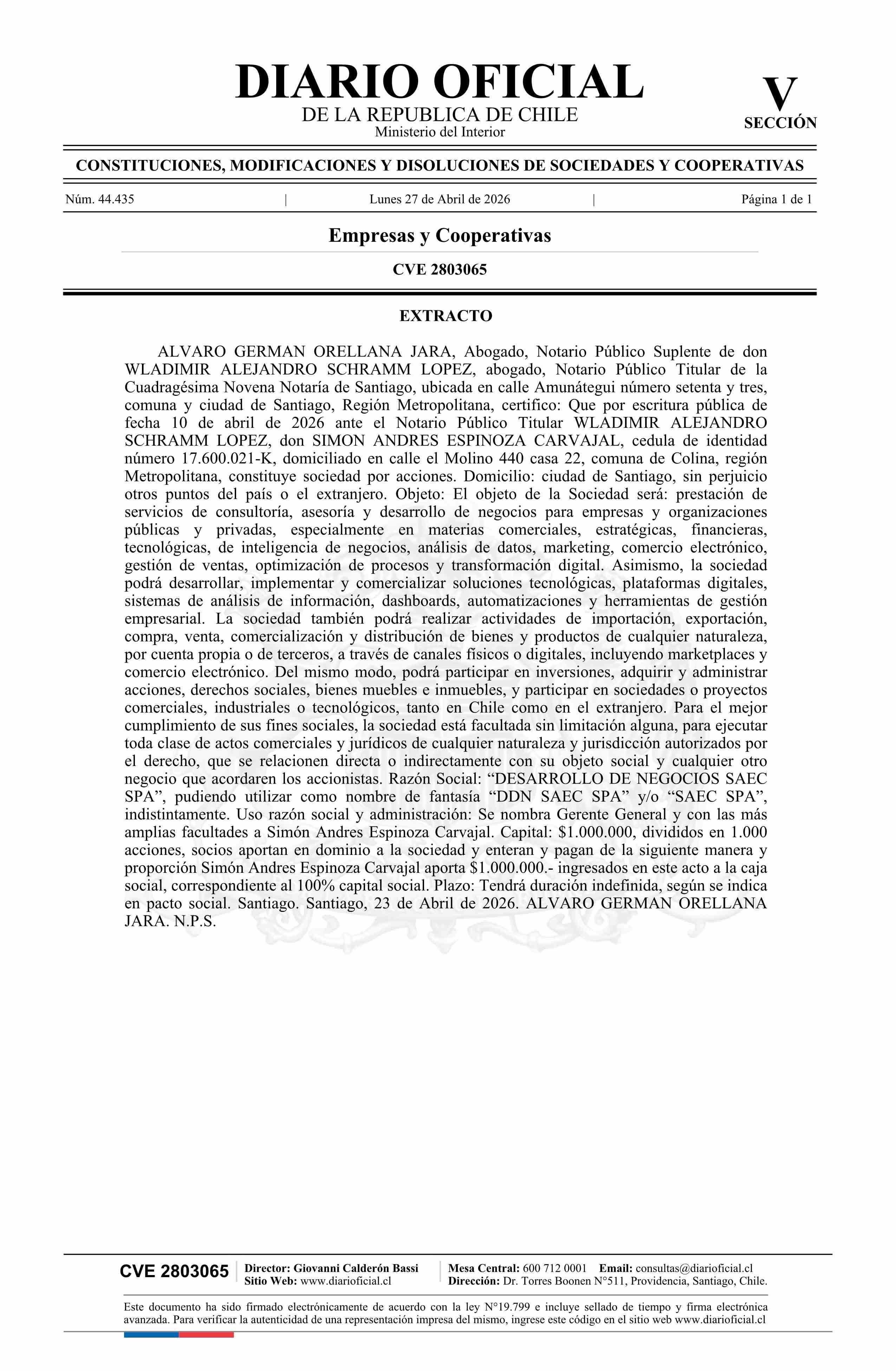 DESARROLLO DE NEGOCIOS SAEC SpA