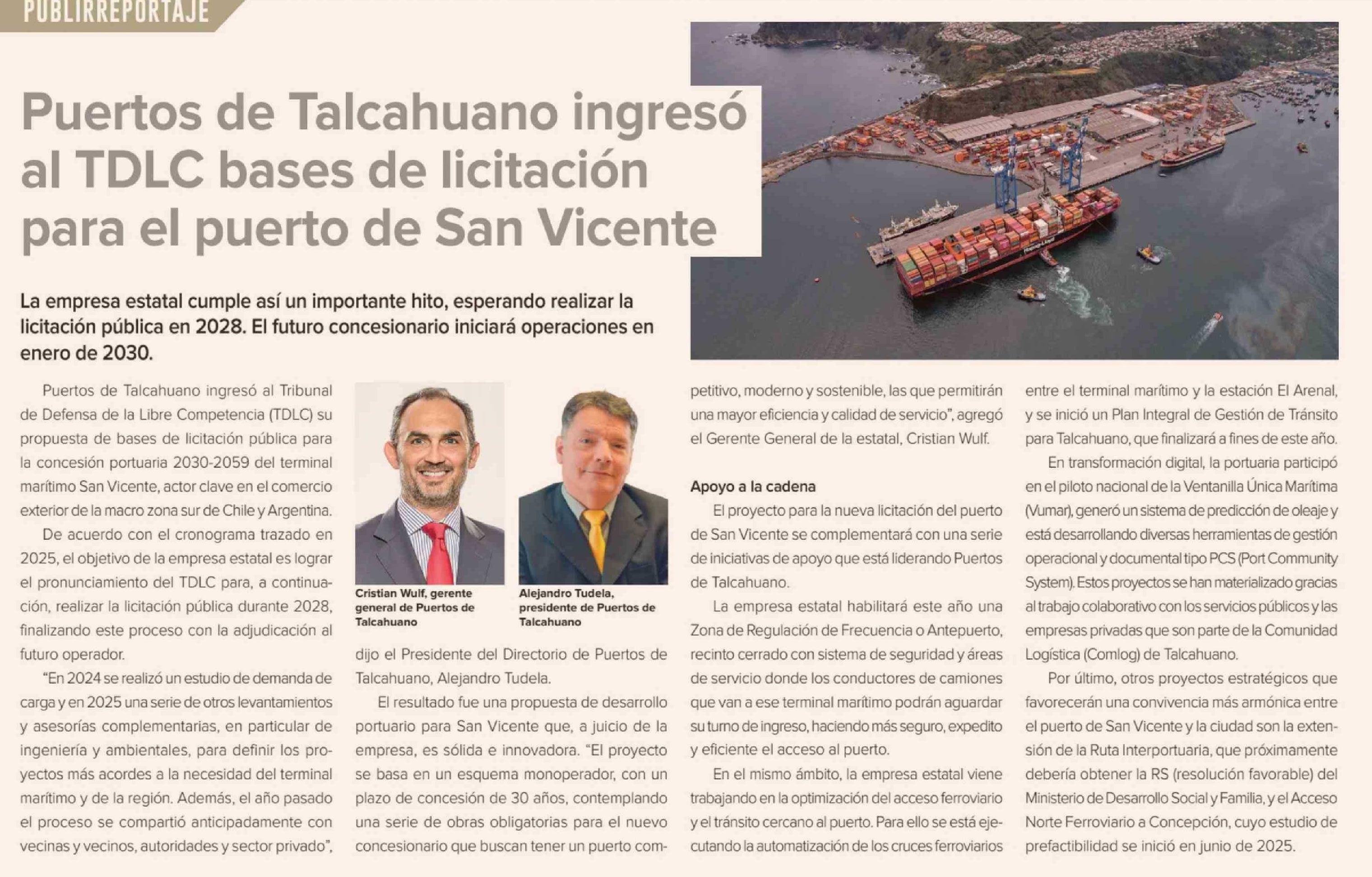 Puertos de Talcahuano ingresó al TDLC bases de licitación para el puerto de San Vicente