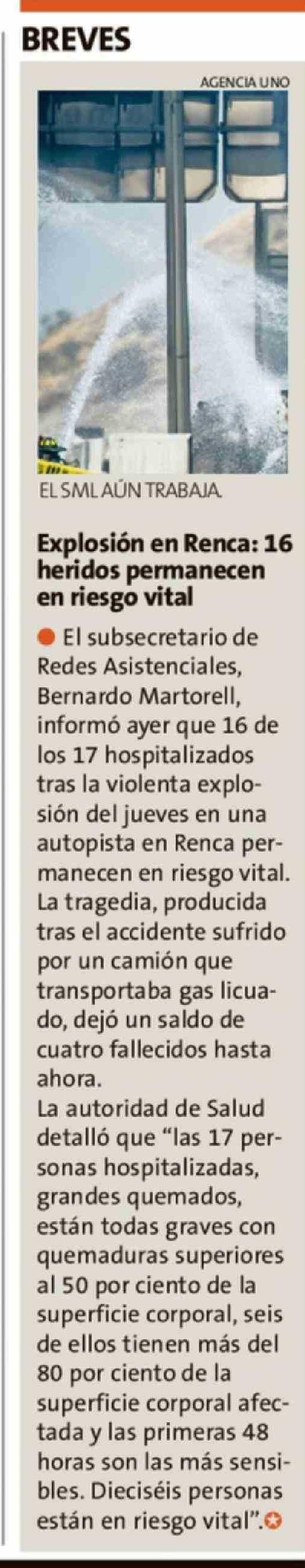 Explosión en Renca: 16 heridos permanecen en riesgo vital