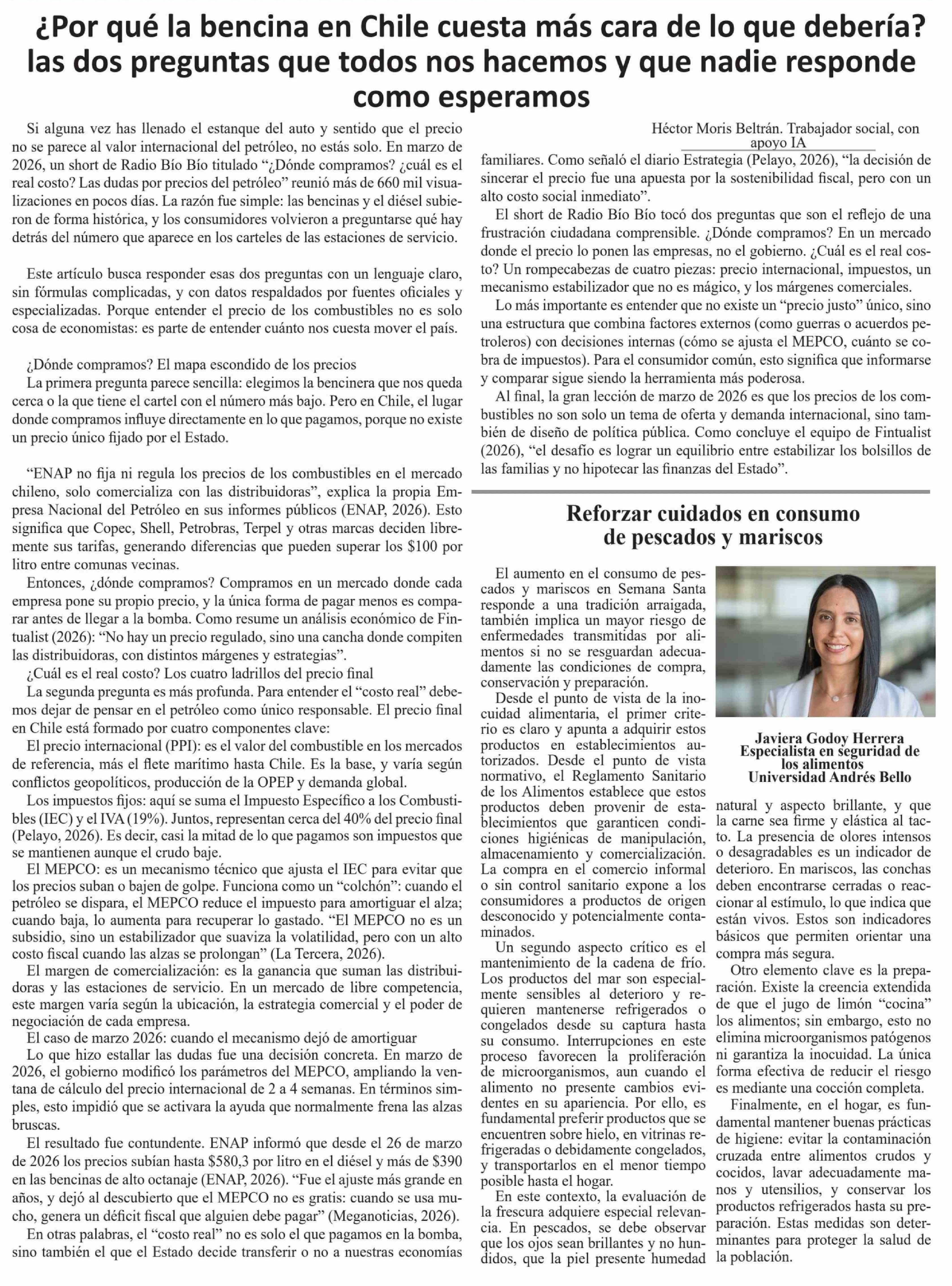 | Título: | Columnas de Opinión: ¿Por qué la bencina en Chile cuesta más cara de lo que debería? las dos preguntas que todos nos hacemos y que nadie responde como esperamos |