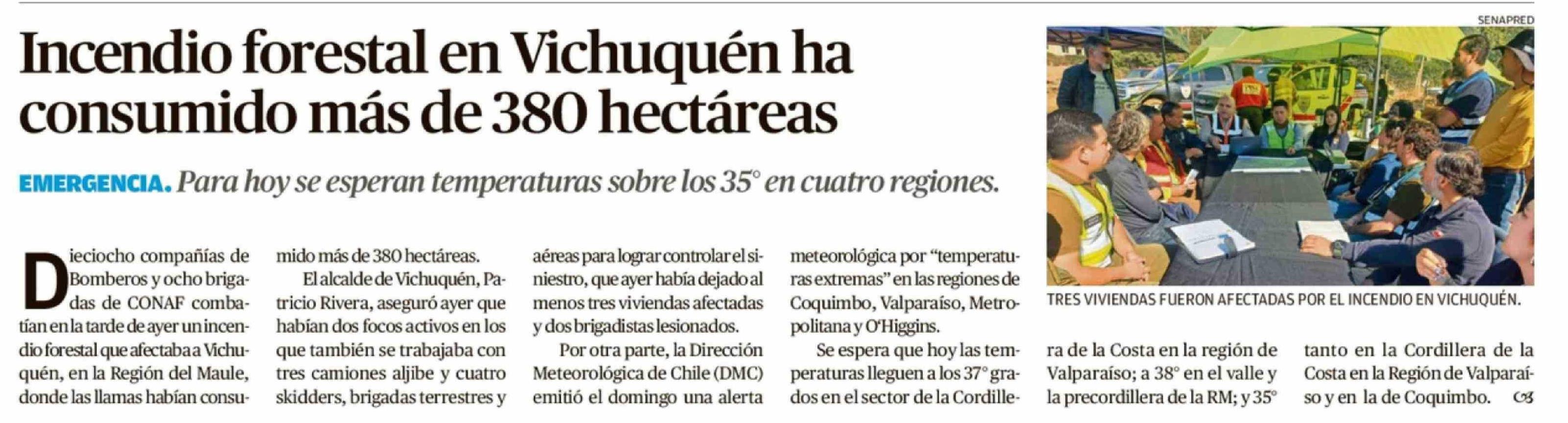 Incendio forestal en Vichuquén ha consumido más de 380 hectáreas