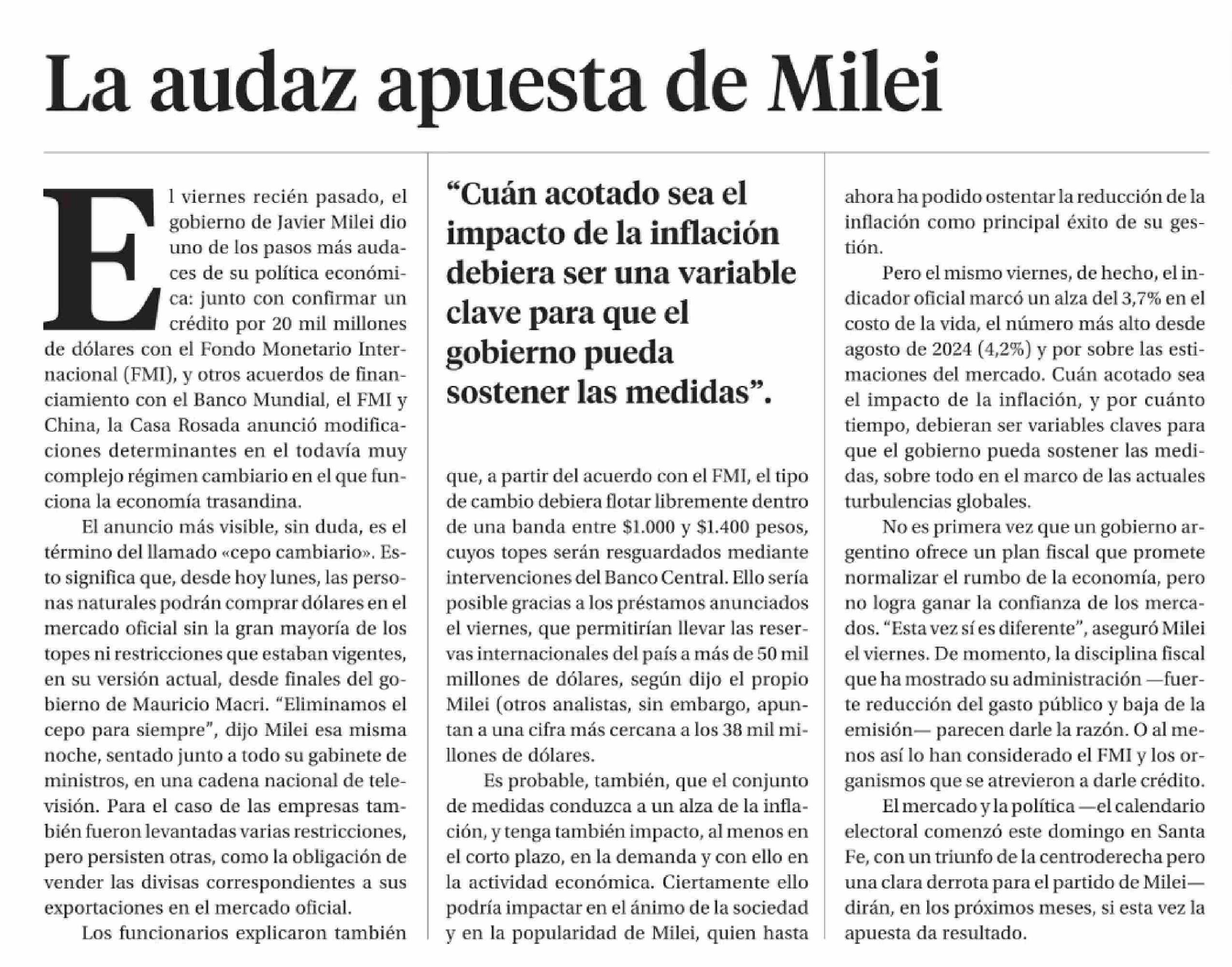 COLUMNAS DE OPINIÓN: La audaz apuesta de Milei