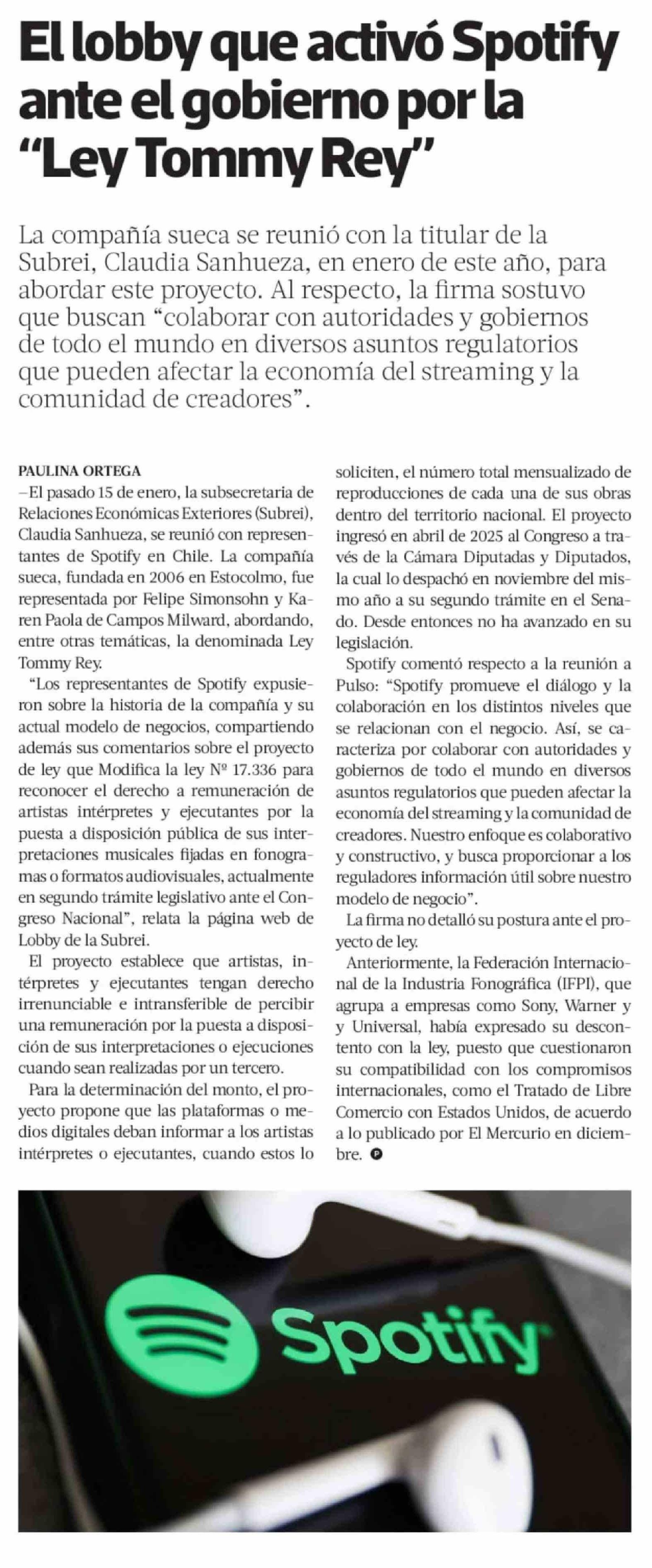 El lobby que activó Spotify ante el gobierno por la "Ley Tommy Rey"