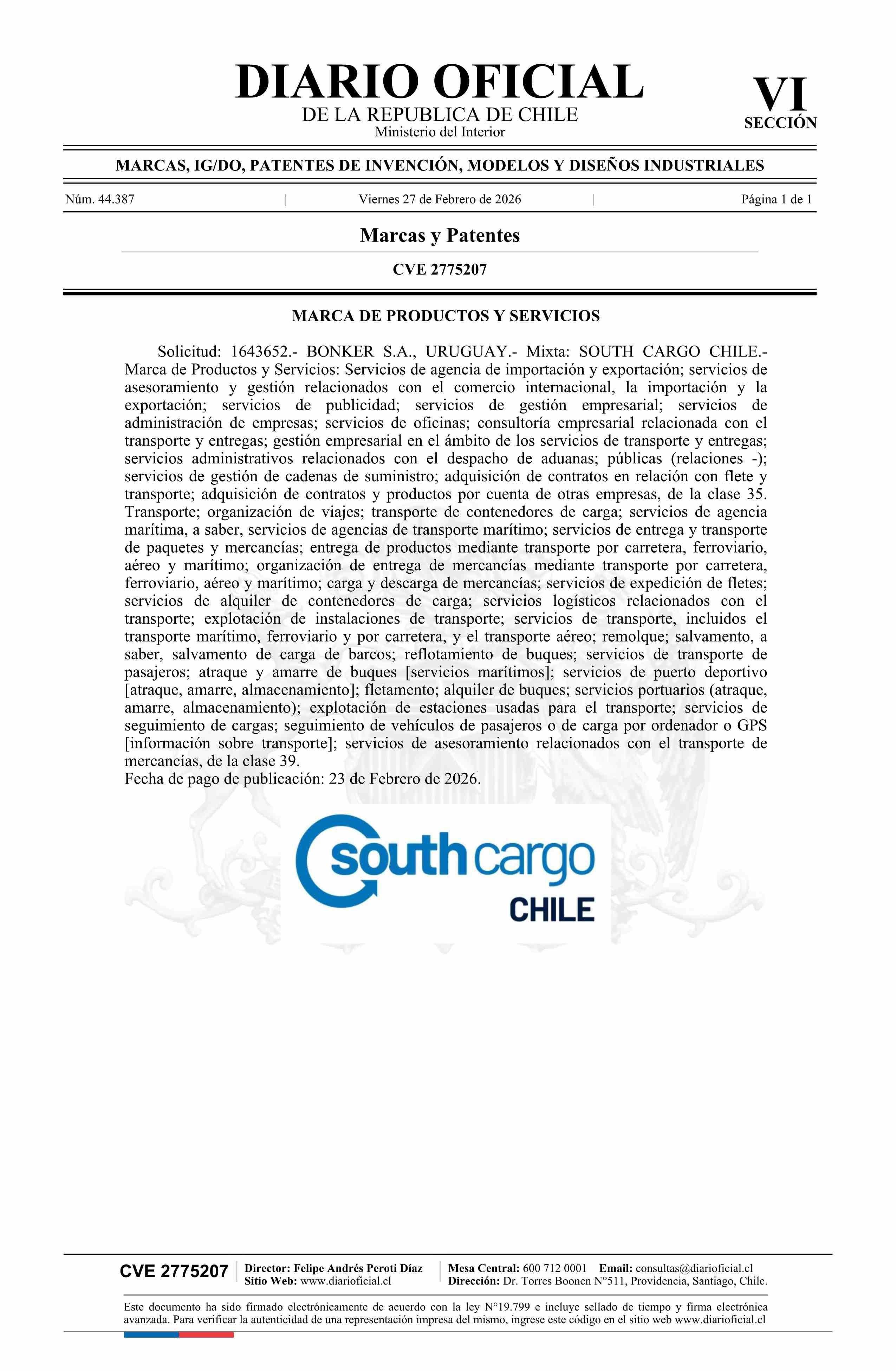 Diario Oficial Edición Electrónica (Diario Oficial de Chile - 6 Marcas Y Patentes)