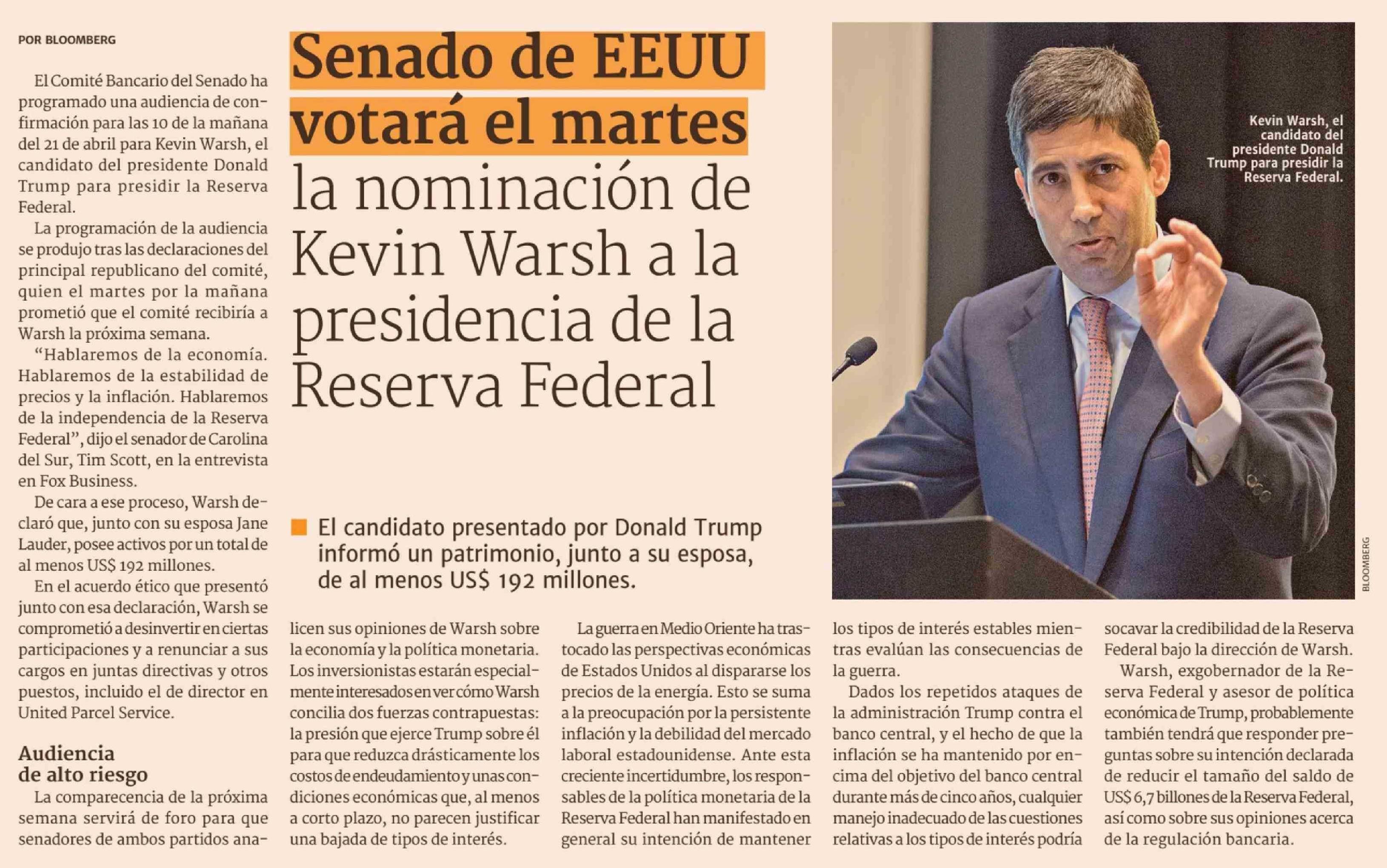 Senado de EEUU votará el martes la nominación de Kevin Warsh a la presidencia de la Reserva Federal