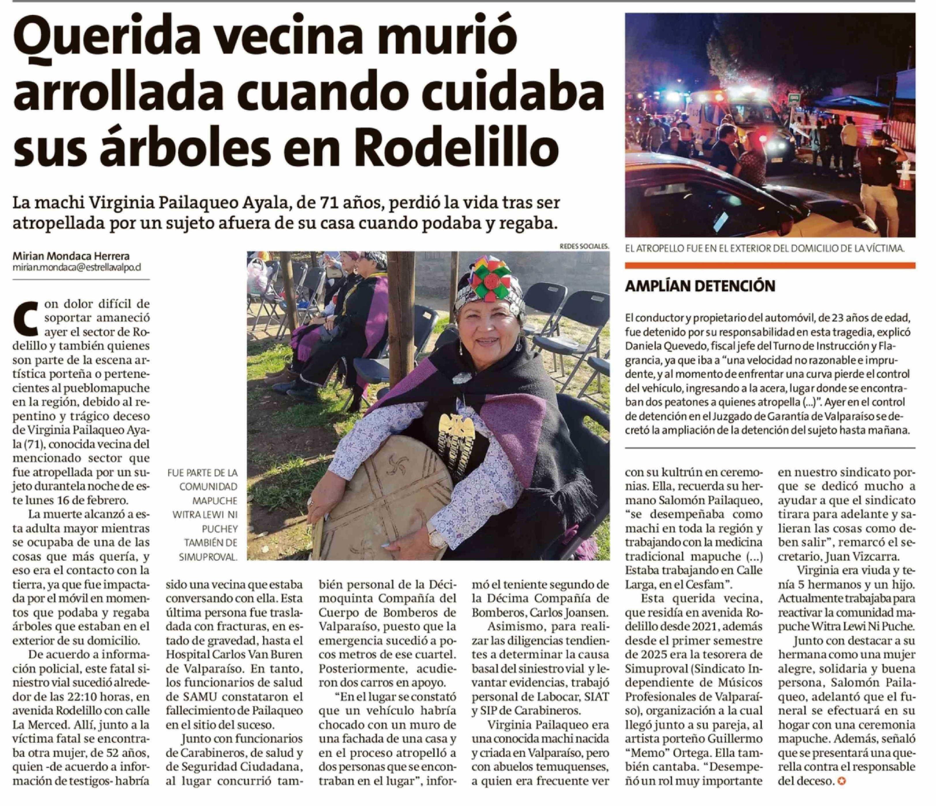 Querida vecina murió arrollada cuando cuidaba sus árboles en Rodelillo
