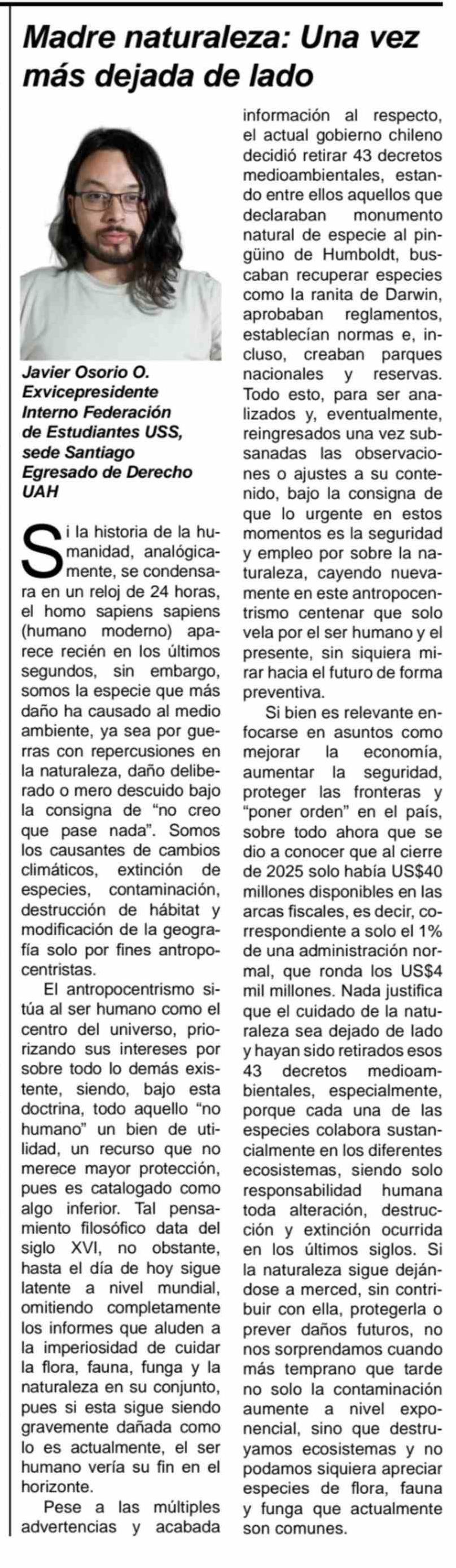 Columnas de Opinión: Madre naturaleza: Una vez más dejada de lado
