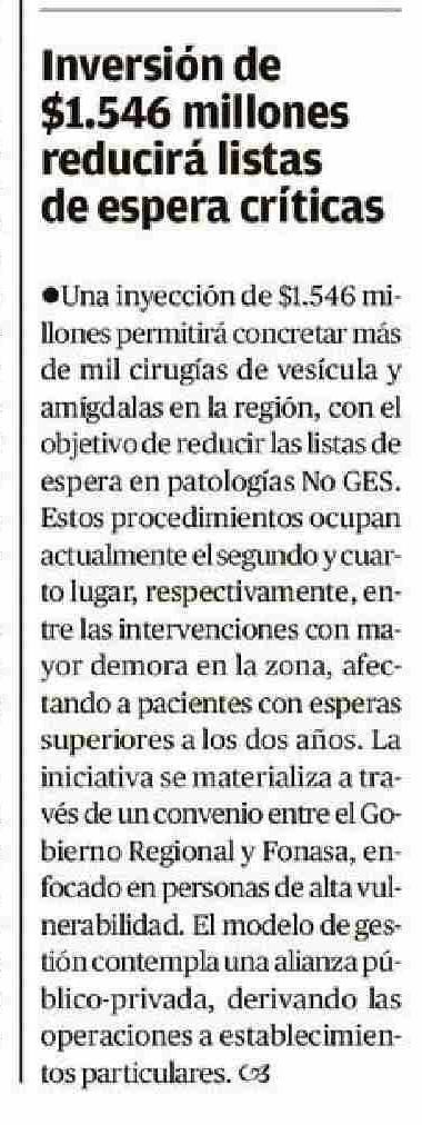 Inversión de $1.546 millones reducirá listas de espera críticas