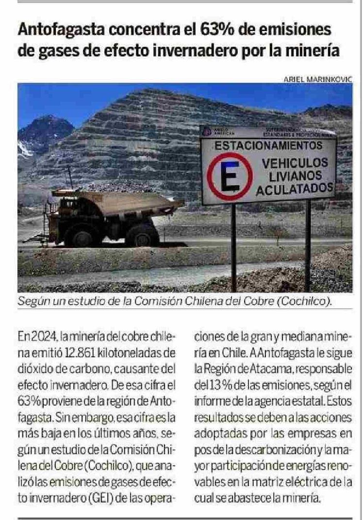 Antofagasta concentra el 63% de emisiones de gases de efecto invernadero por la minería