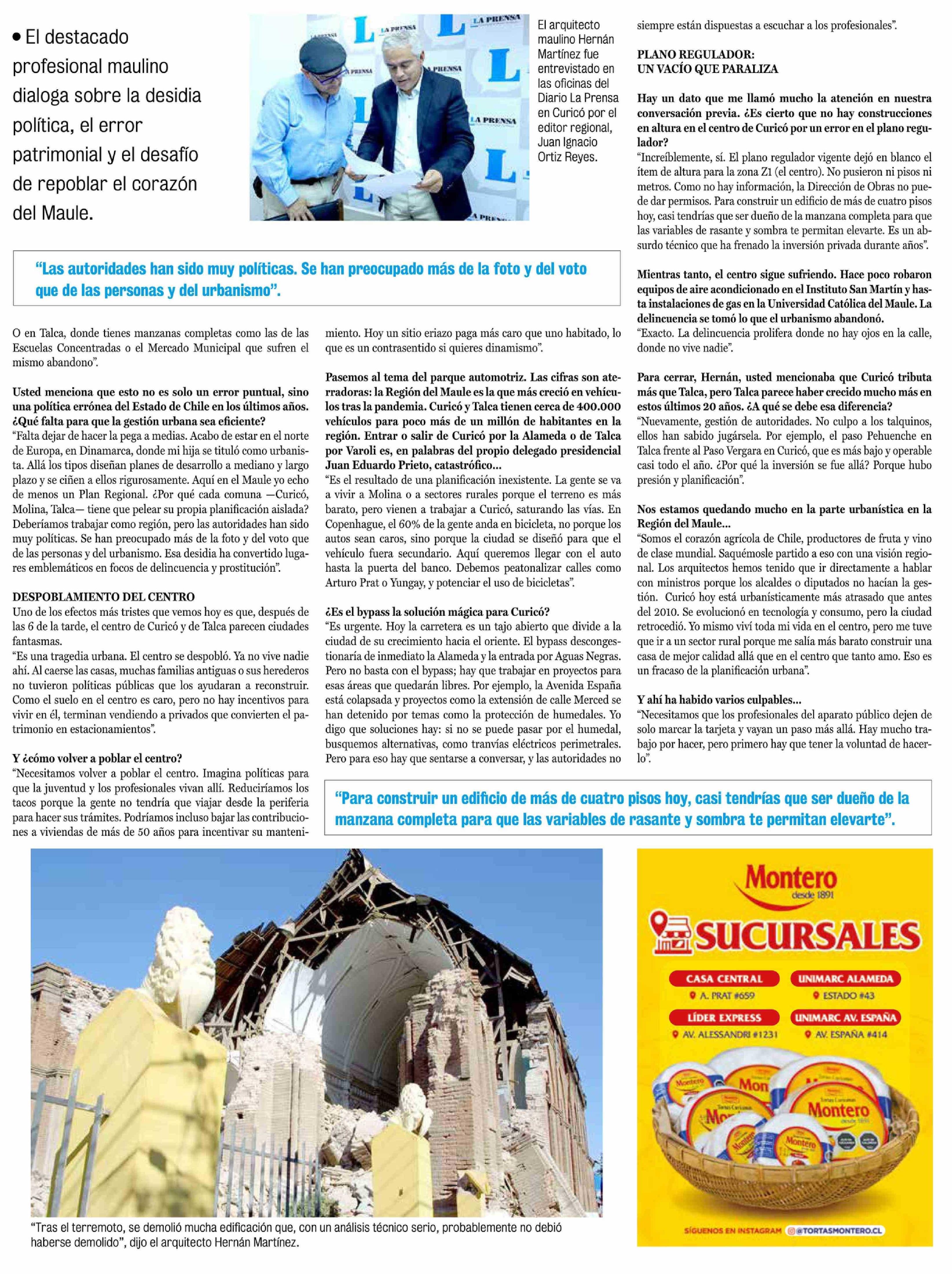 "Urbanisticamente Curicó está peor que en 2010. Pareciera que la ciudad se hubiese quedado detenida en el escombro"