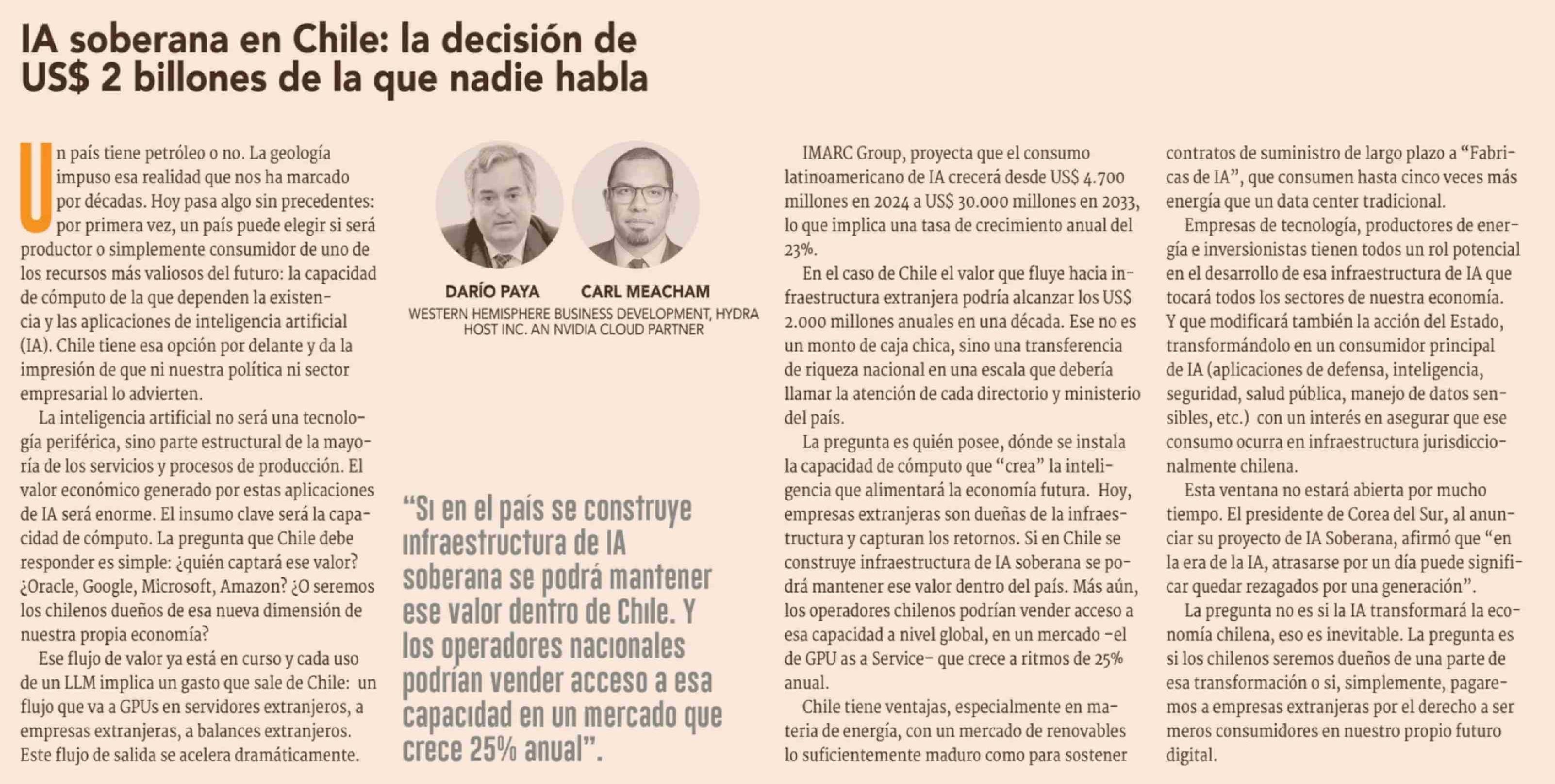 Columnas de Opinión: IA soberana en Chile: la decisión de US$ 2 billones de la que nadie habla