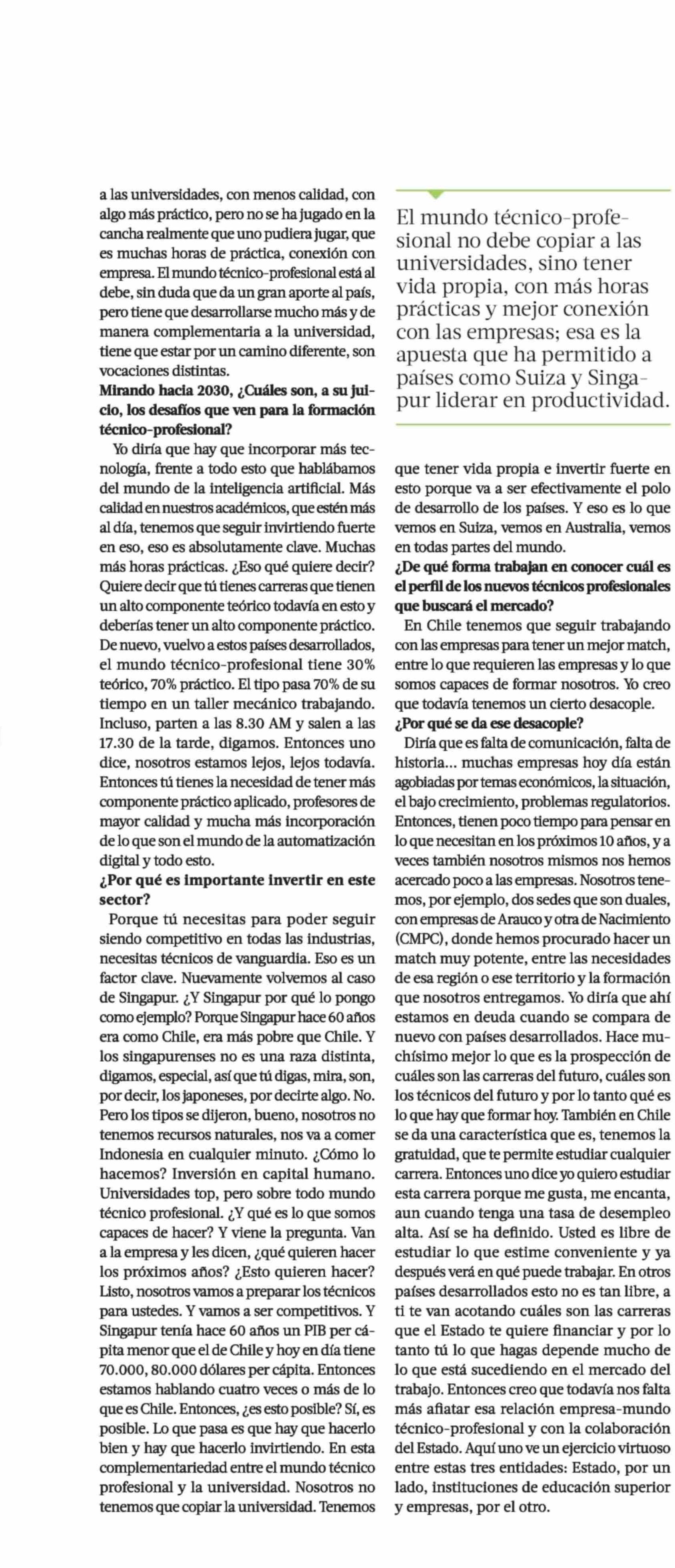 “Chile tiene que seguir invirtiendo en técnicos para el desarrollo del país”