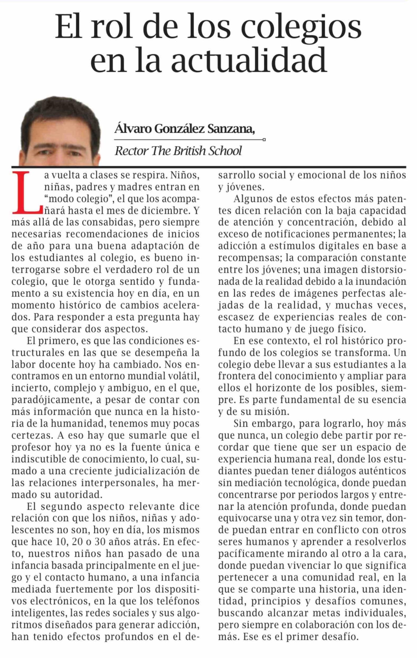 Columnas de Opinión: El rol de los colegios en la actualidad