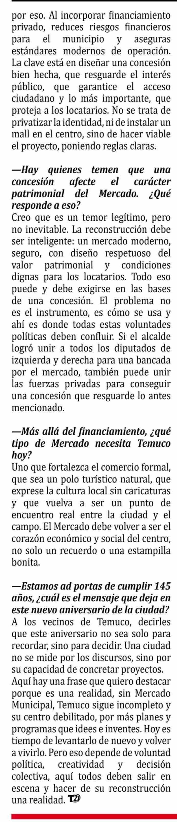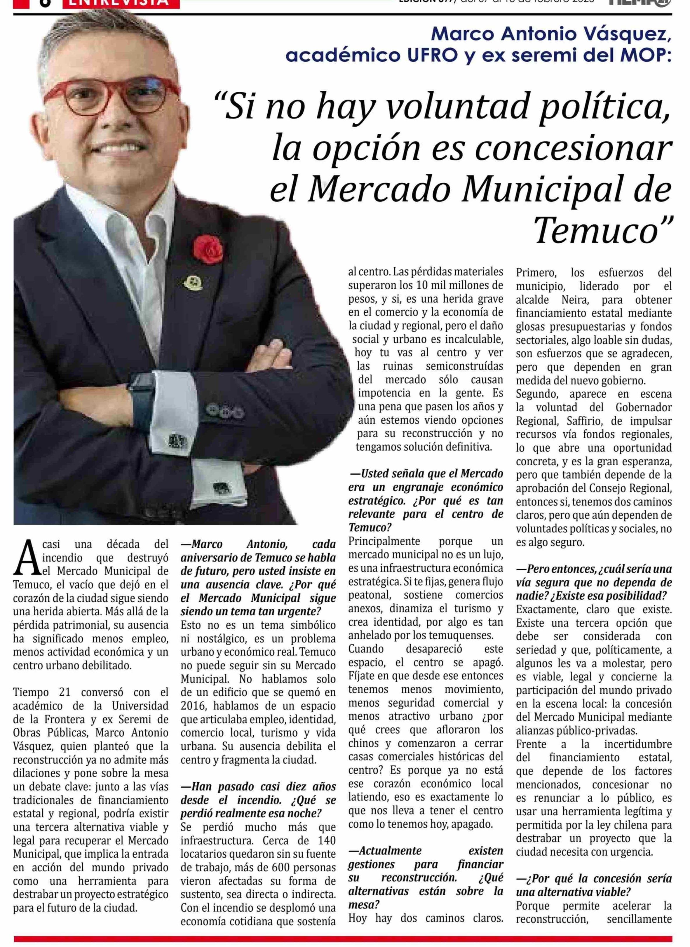 "Si no hay voluntad política, la opción es concesionar el Mercado Municipal de Temuco"