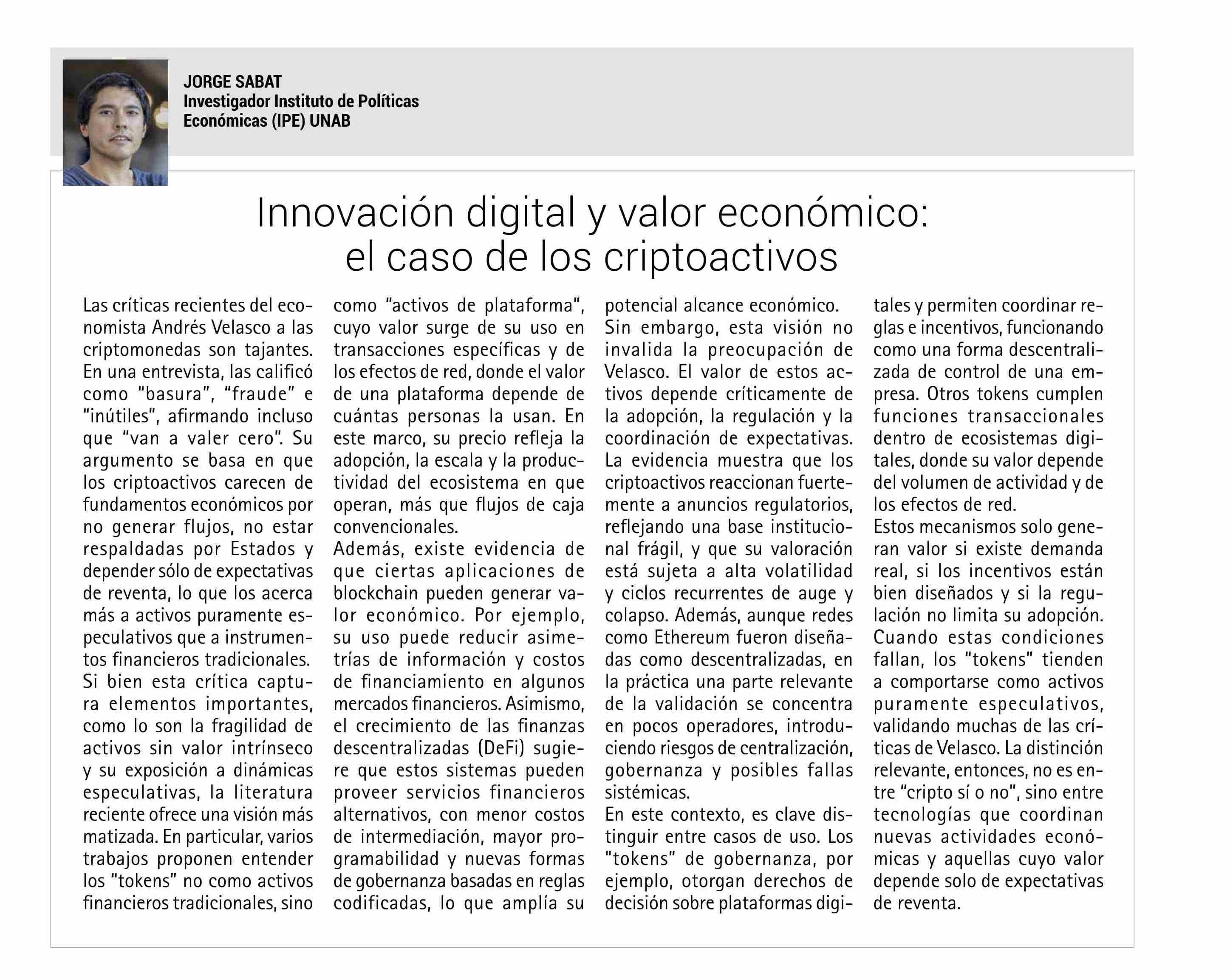 COLUMNAS DE OPINIÓN: Innovación digital y valor económico: el caso de los criptoactivos
