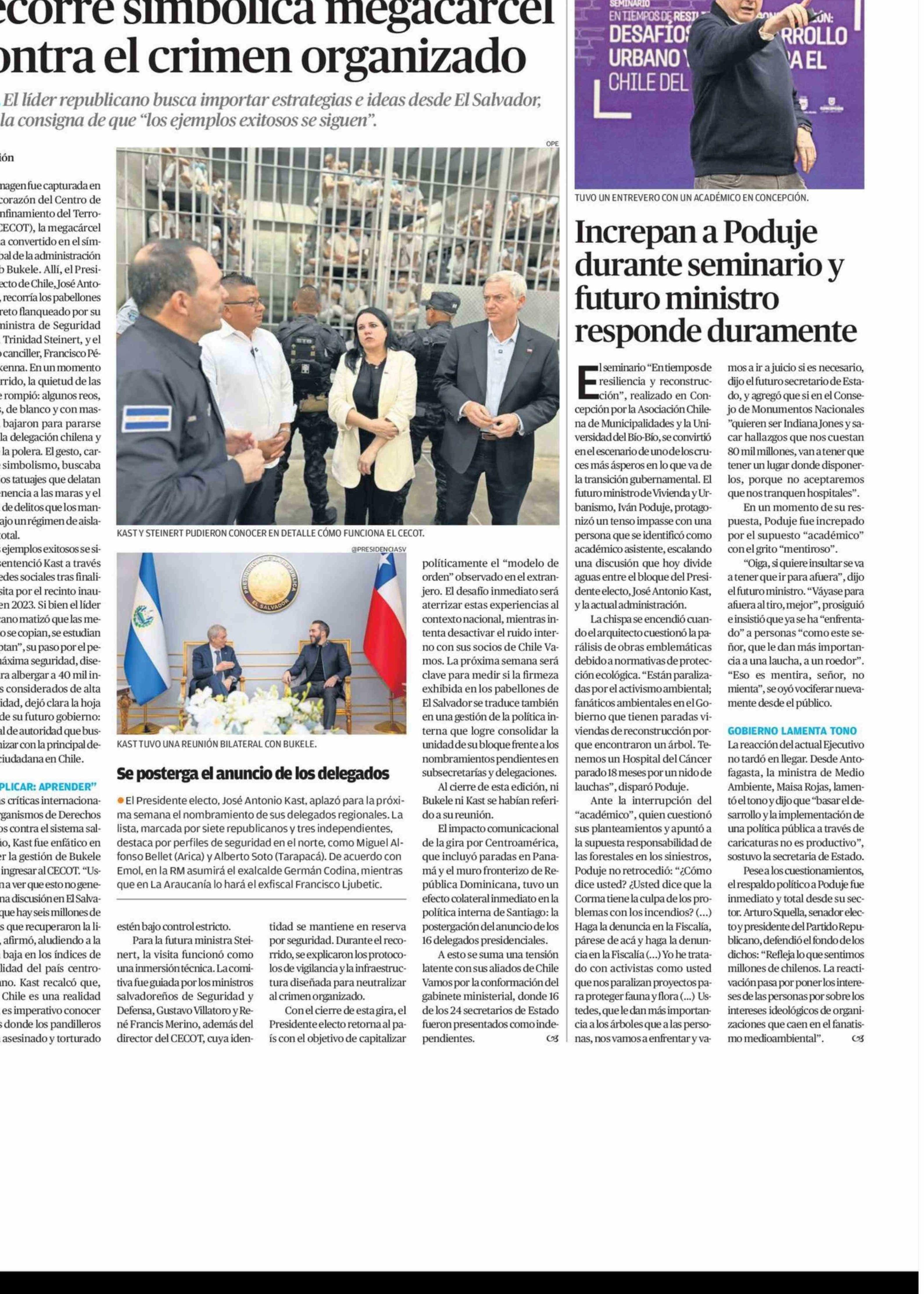 Kast se reúne con Bukele y recorre simbólica megacárcel contra el crimen organizado
