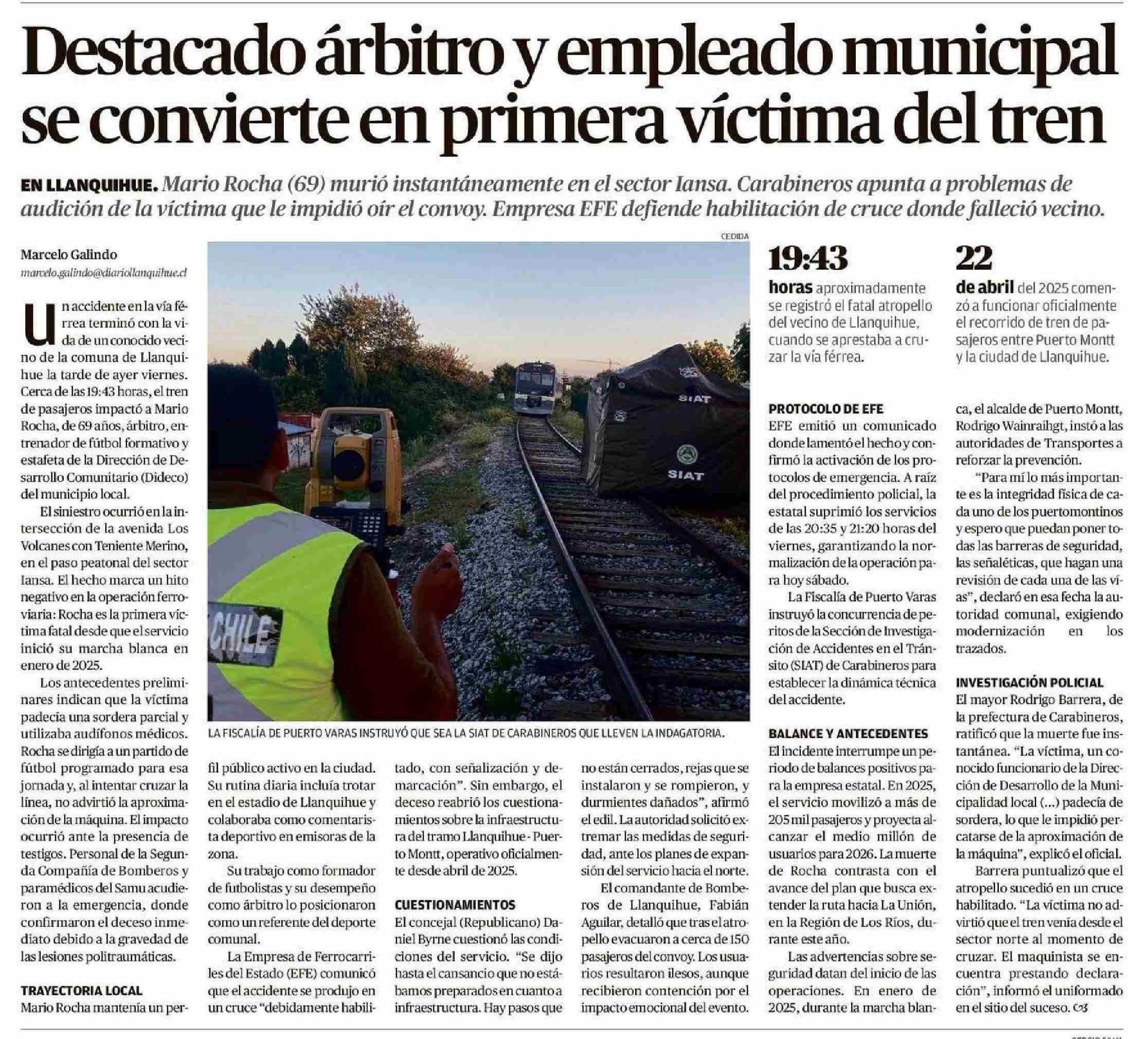 Destacado árbitro y empleado municipal se convierte en primera víctima del tren
